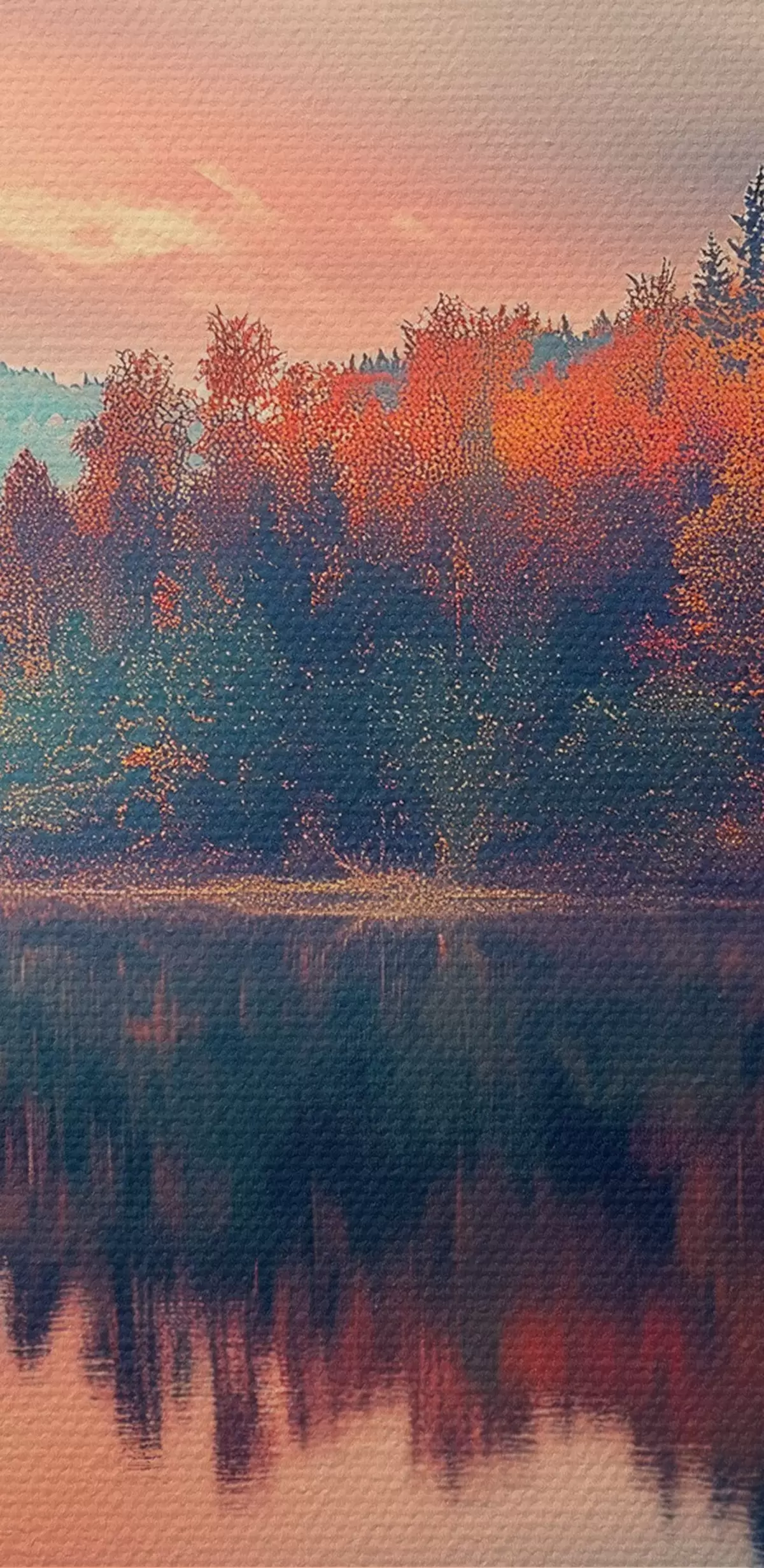 Trois types de matériaux peuvent être commandés : Economic Canvas - matériau dense et durable pour l'impression numérique, identique à la toile de peintre, surface imperméable, reproduction réaliste des détails, matériau à grain moyen. Premium Canvas - la texture ressemble à celle d'une toile de peintre (petits fils entrelacés). Reproduction douce et détaillée de l'image sur une surface mate. Eco-Premium - tissu 100 % coton de haute qualité. Grâce aux fibres naturelles de coton, le matériau est durable et résistant à l'usure. Excellente reproduction des couleurs et des détails.