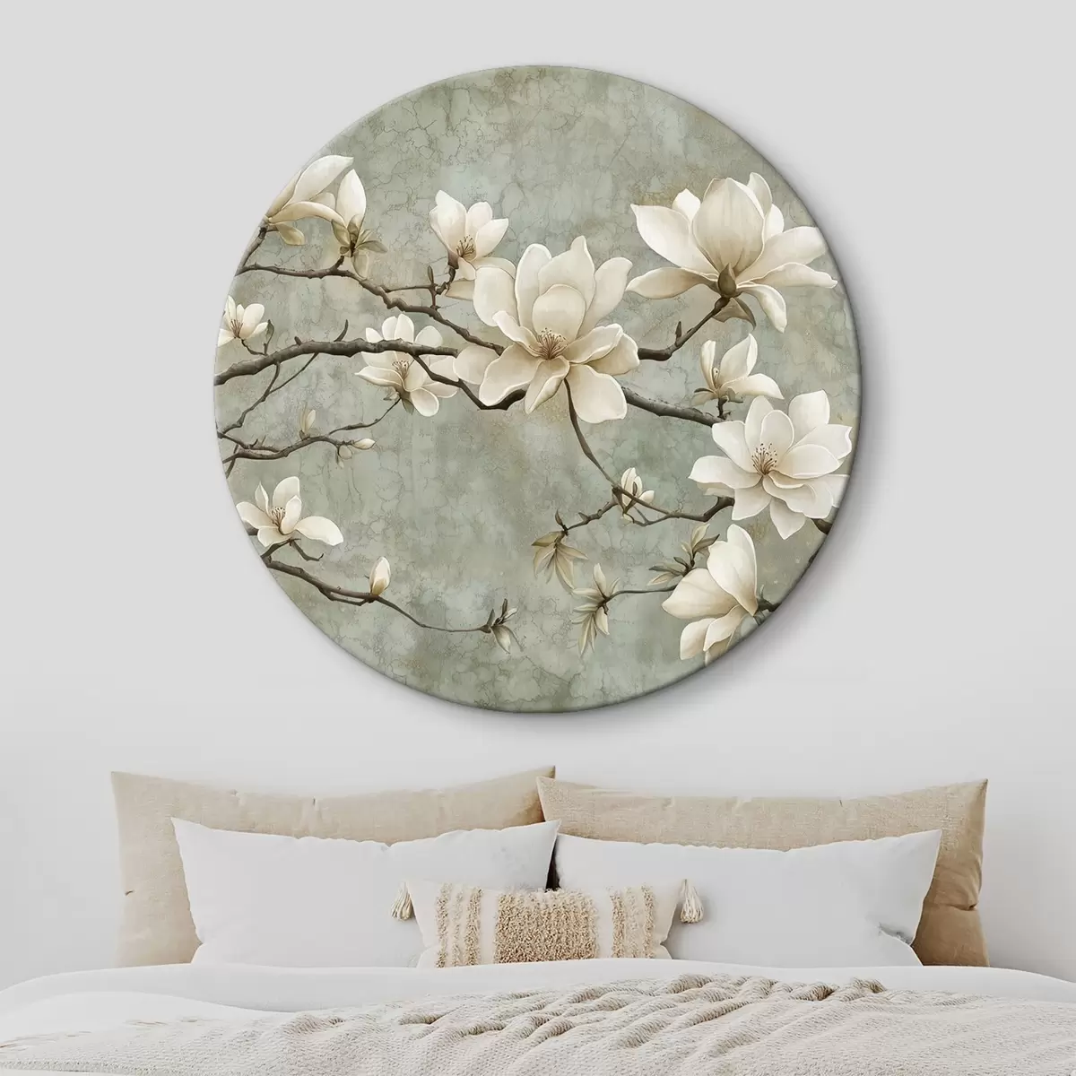 Tableaux ronds Branche de magnolia sur fond pastel grunge r43322
