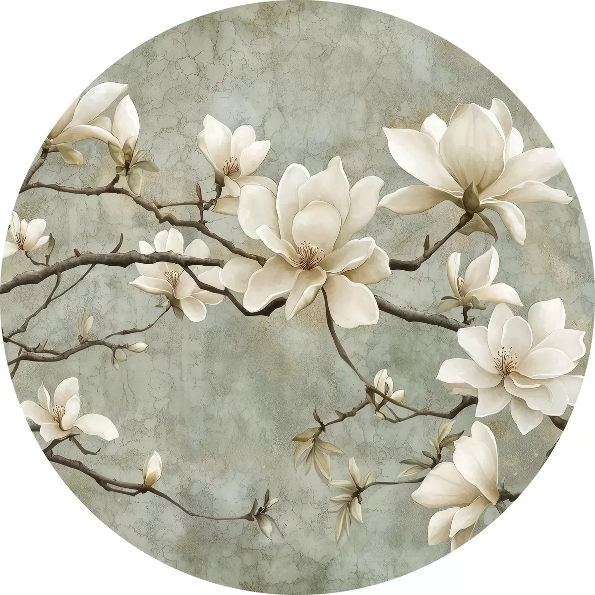 Tableaux ronds Branche de magnolia sur fond pastel grunge r43322