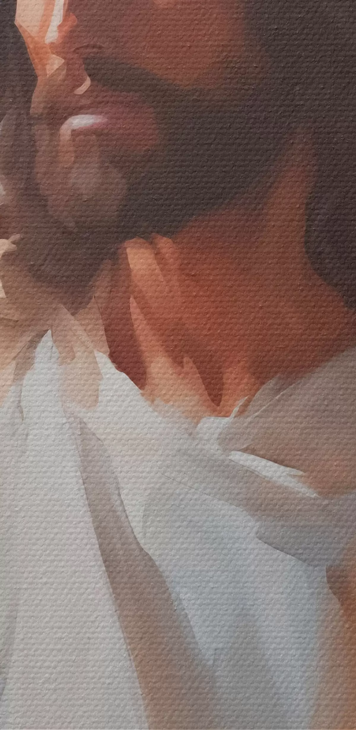 Pour tendre la toile sur des châssis sans endommager l'image, nous utilisons une image miroir.