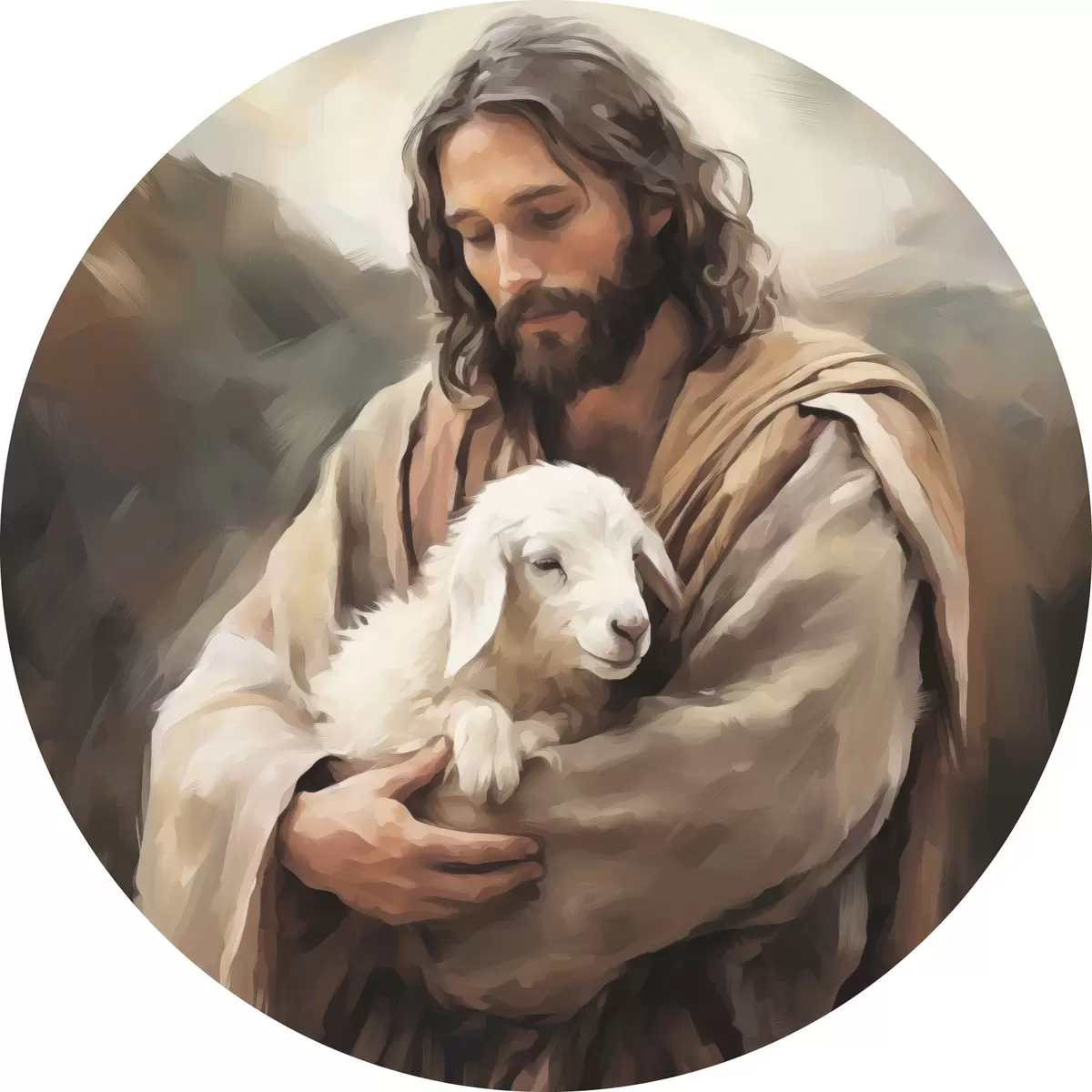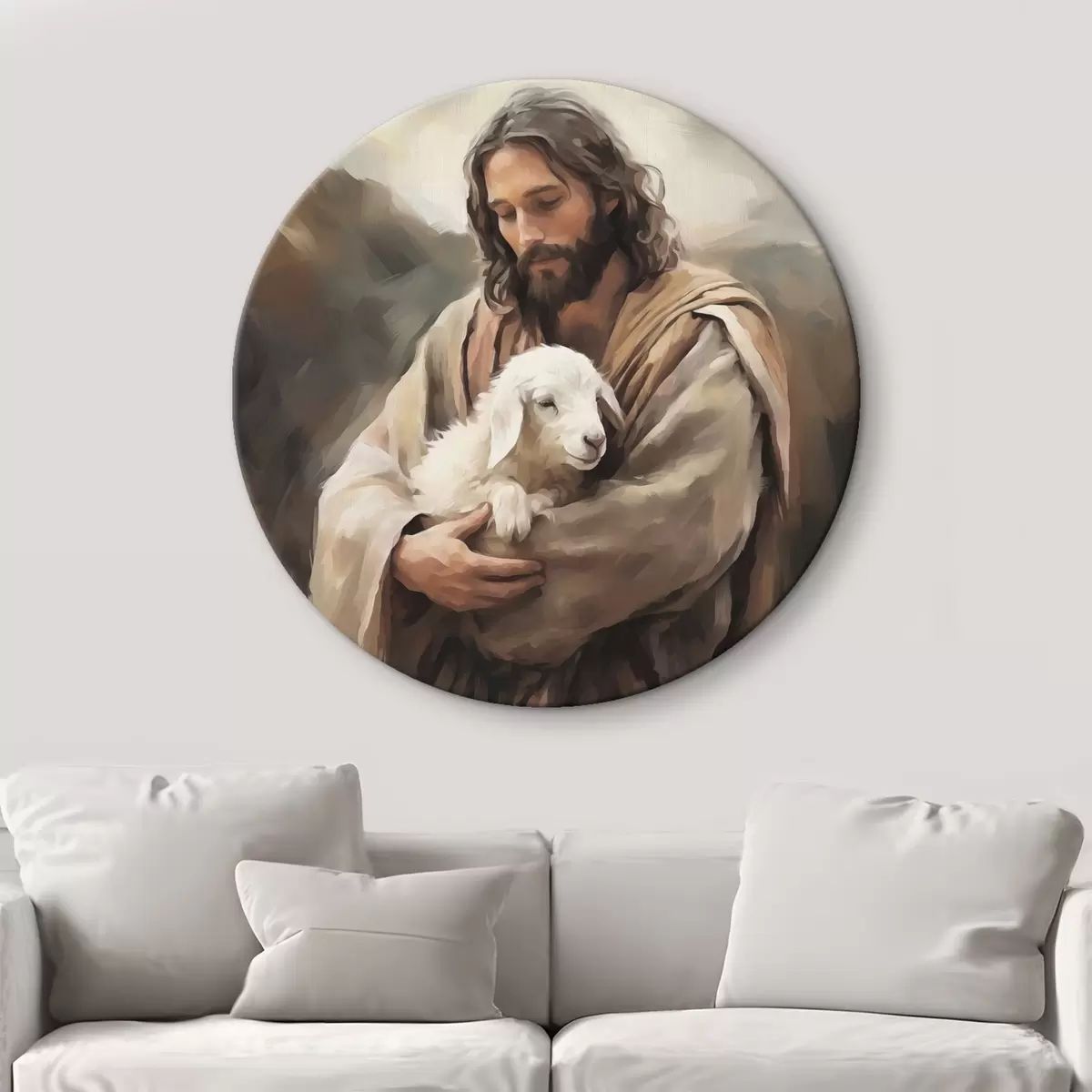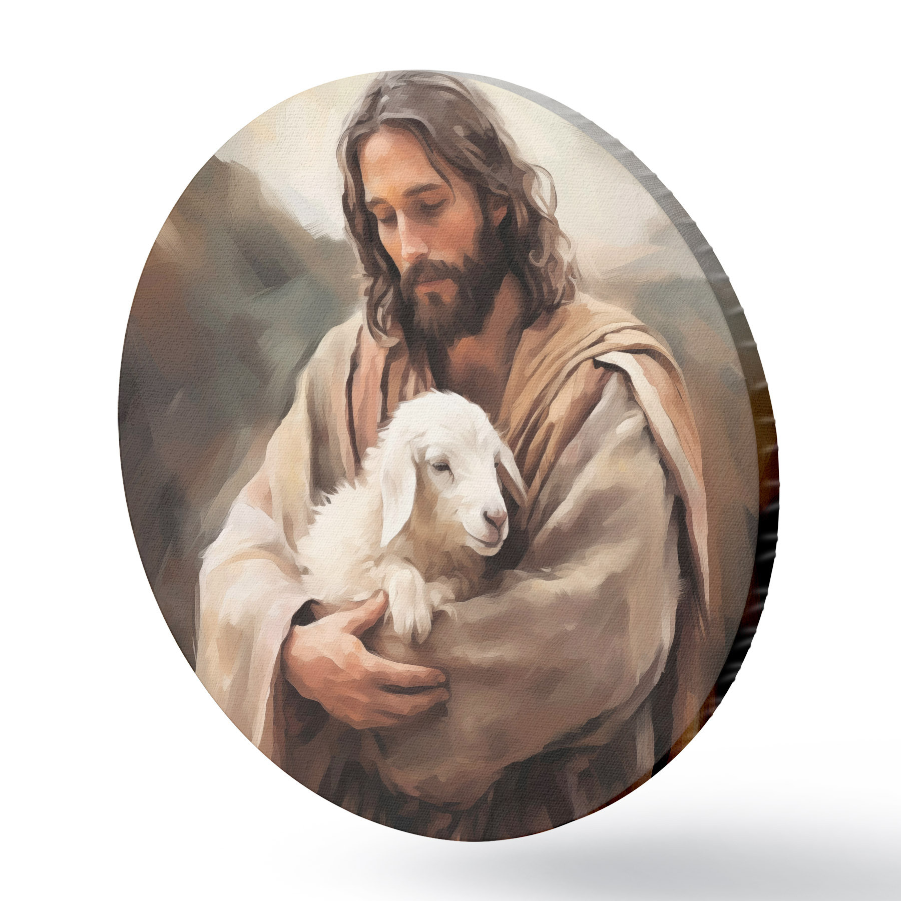 Tableaux ronds Jésus avec l'agneau r43356