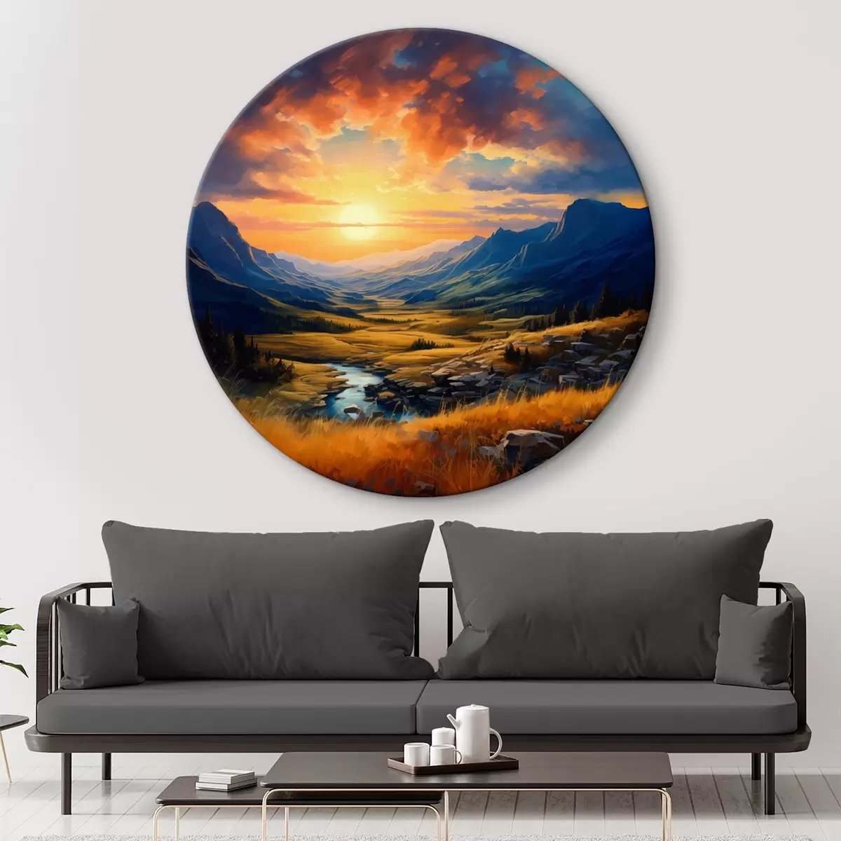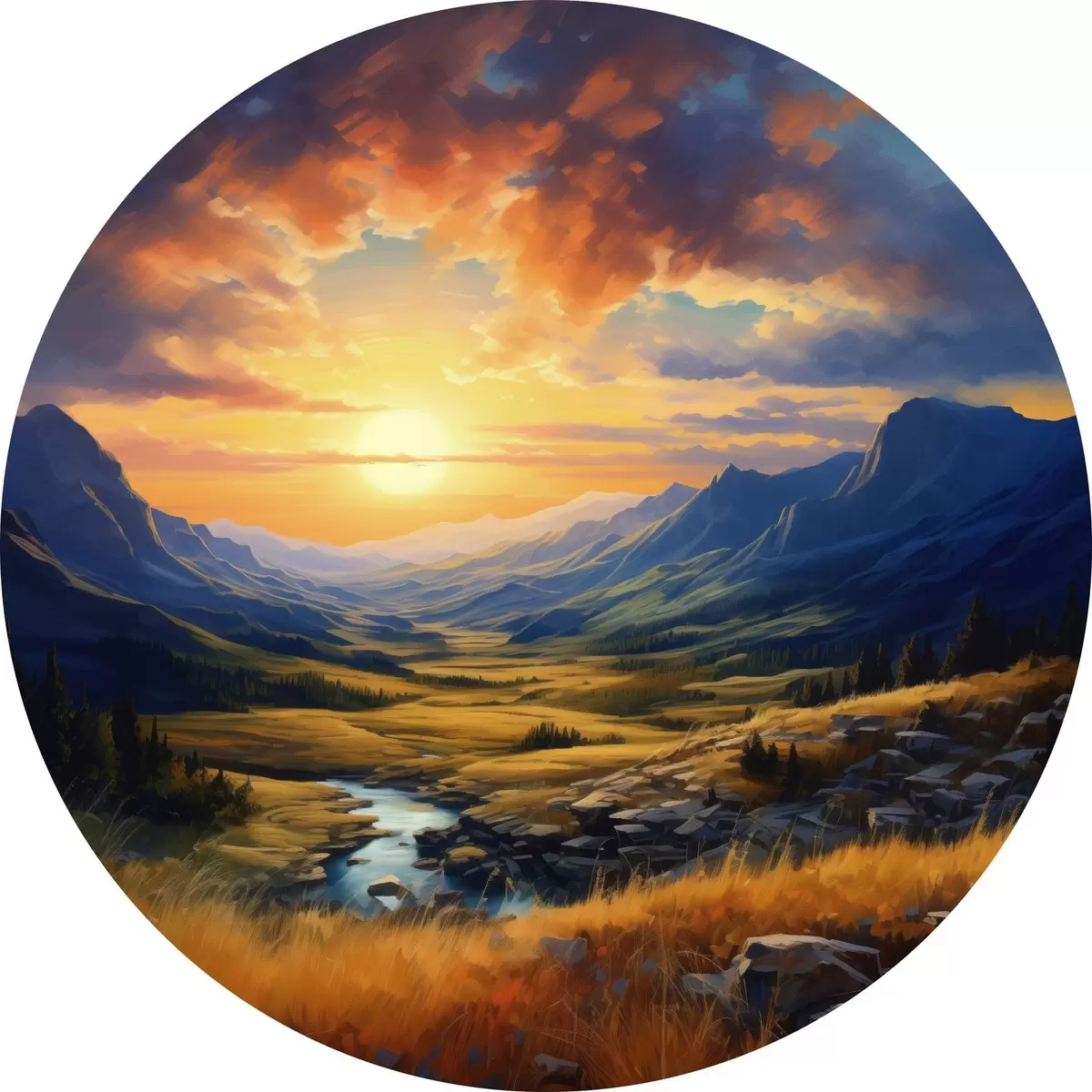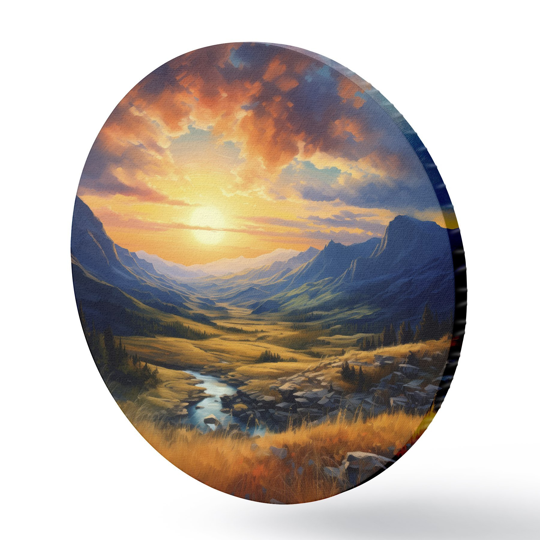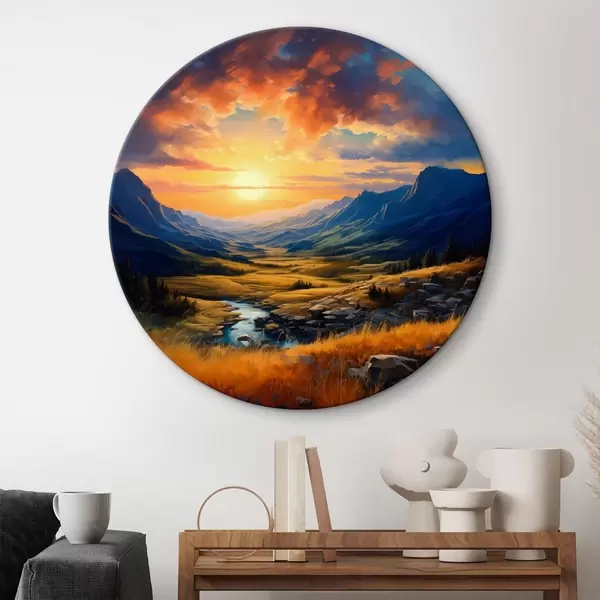 Tableaux ronds Paysage de montagne au coucher du soleil r43378