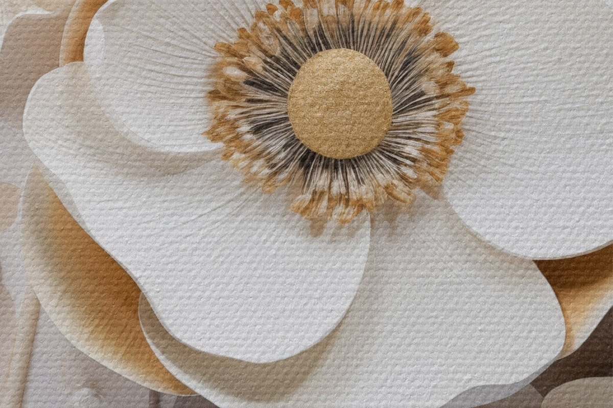 Image Fleurs d'anémones blanches à centre jaune, sur fond minimaliste, créant un motif floral délicat Nr r43400