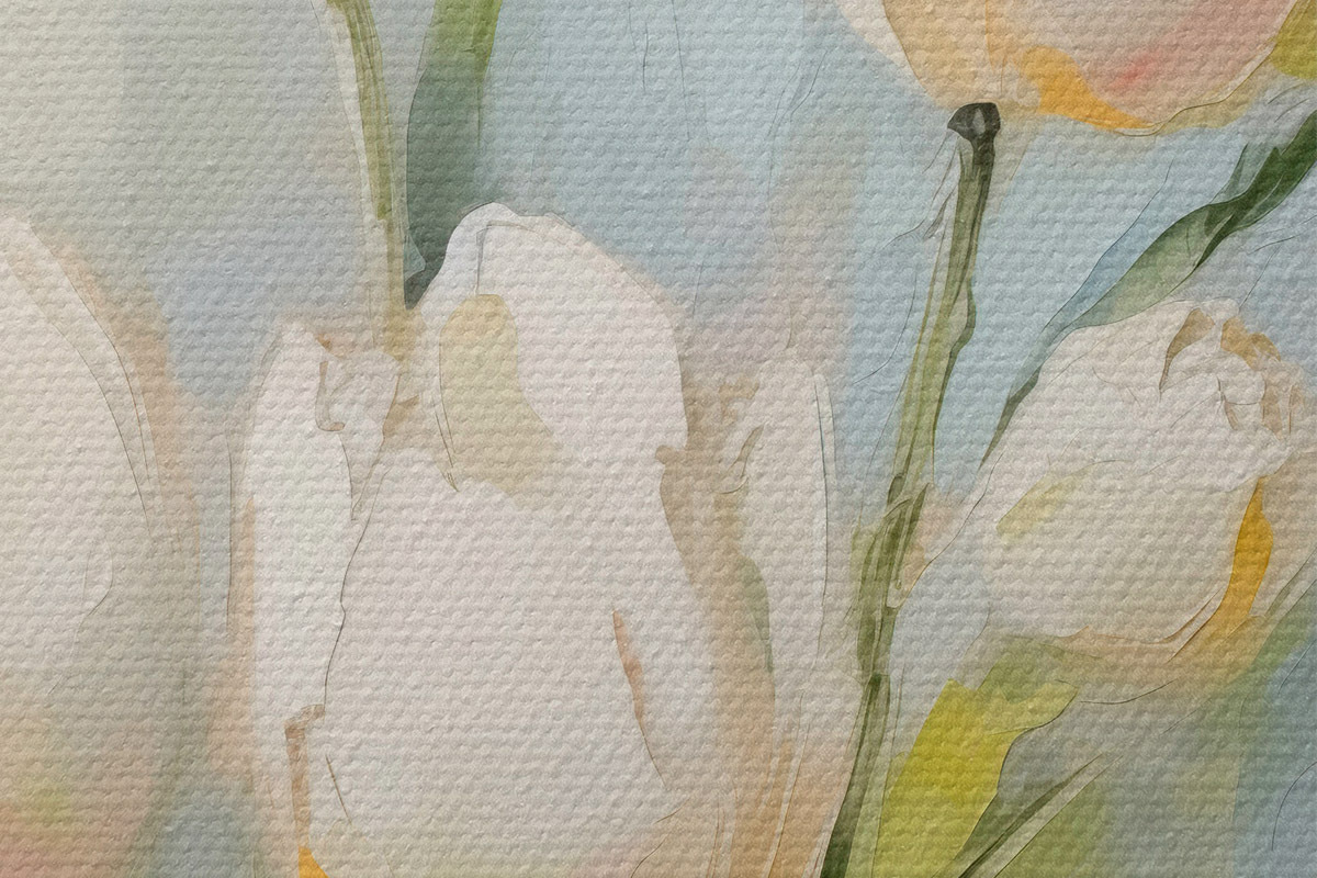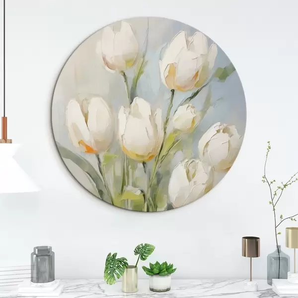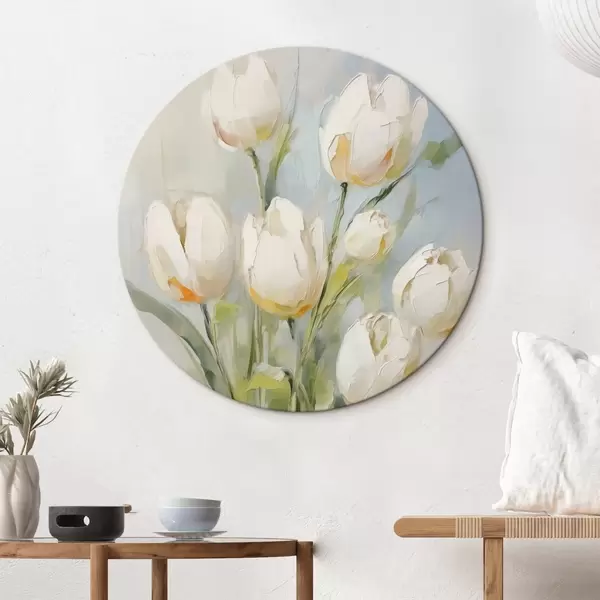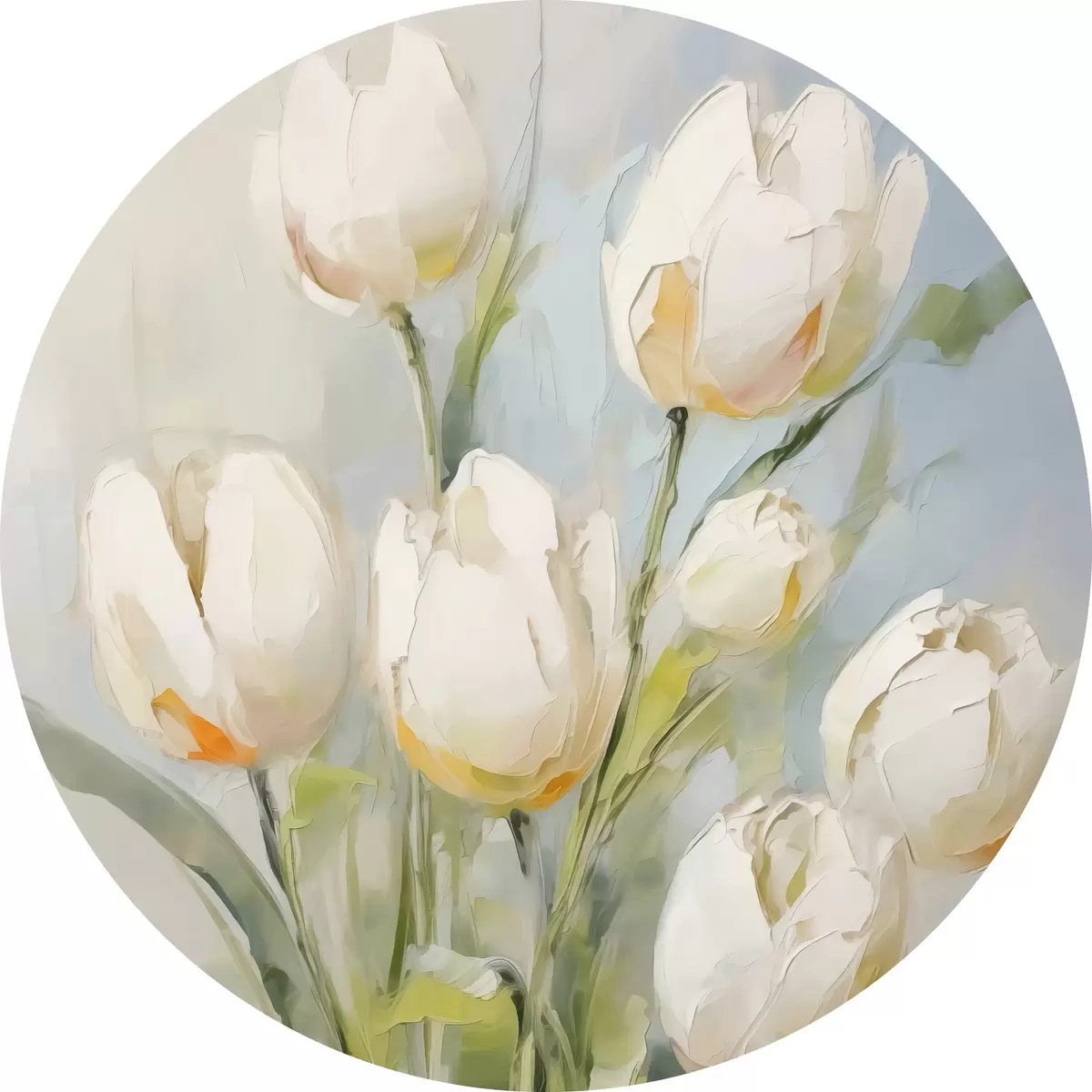 Tableaux ronds Peinture imitation tulipes blanches r43435