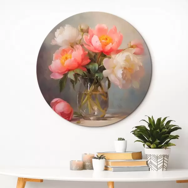 Tableaux ronds Pivoines dans un vase imitation peinture r43438