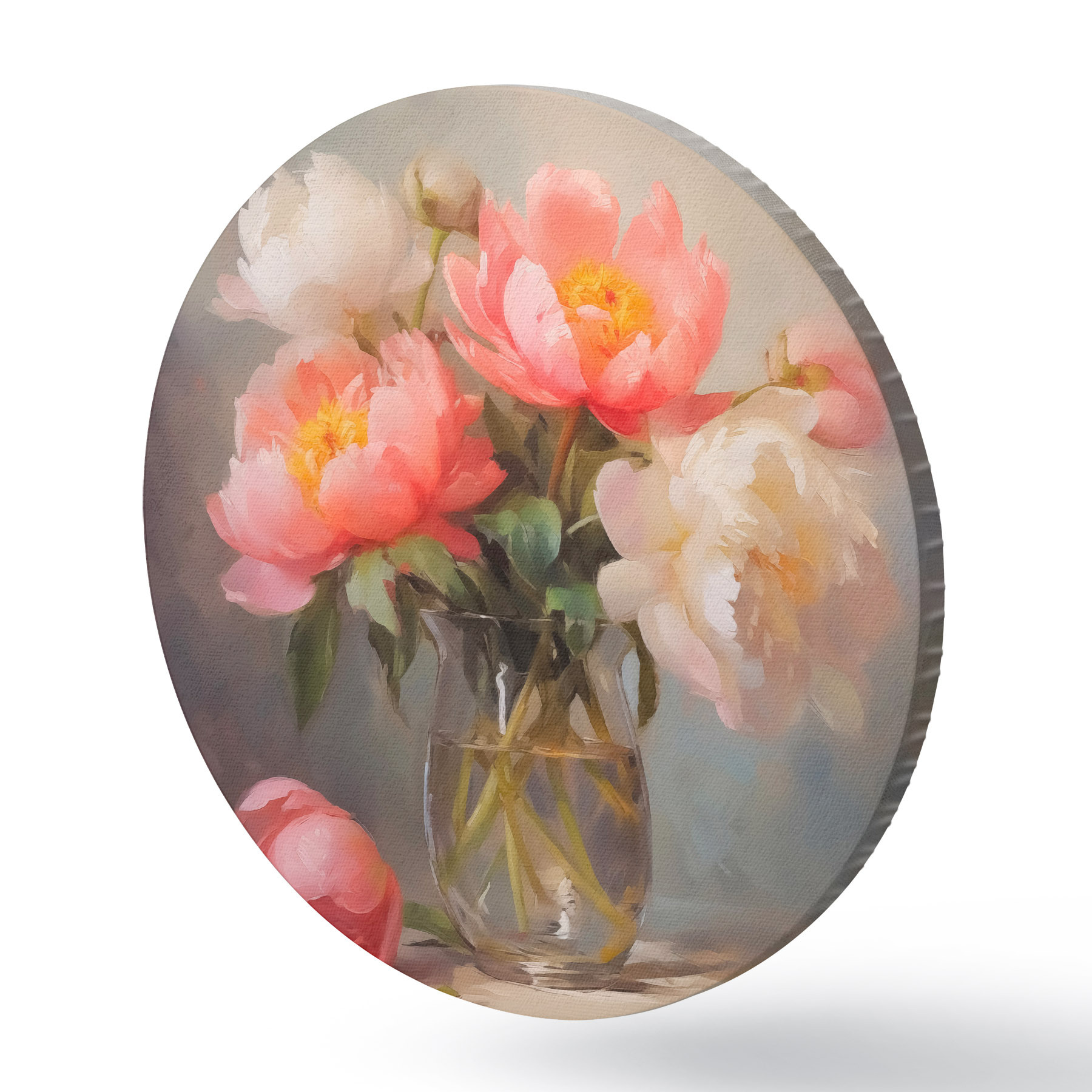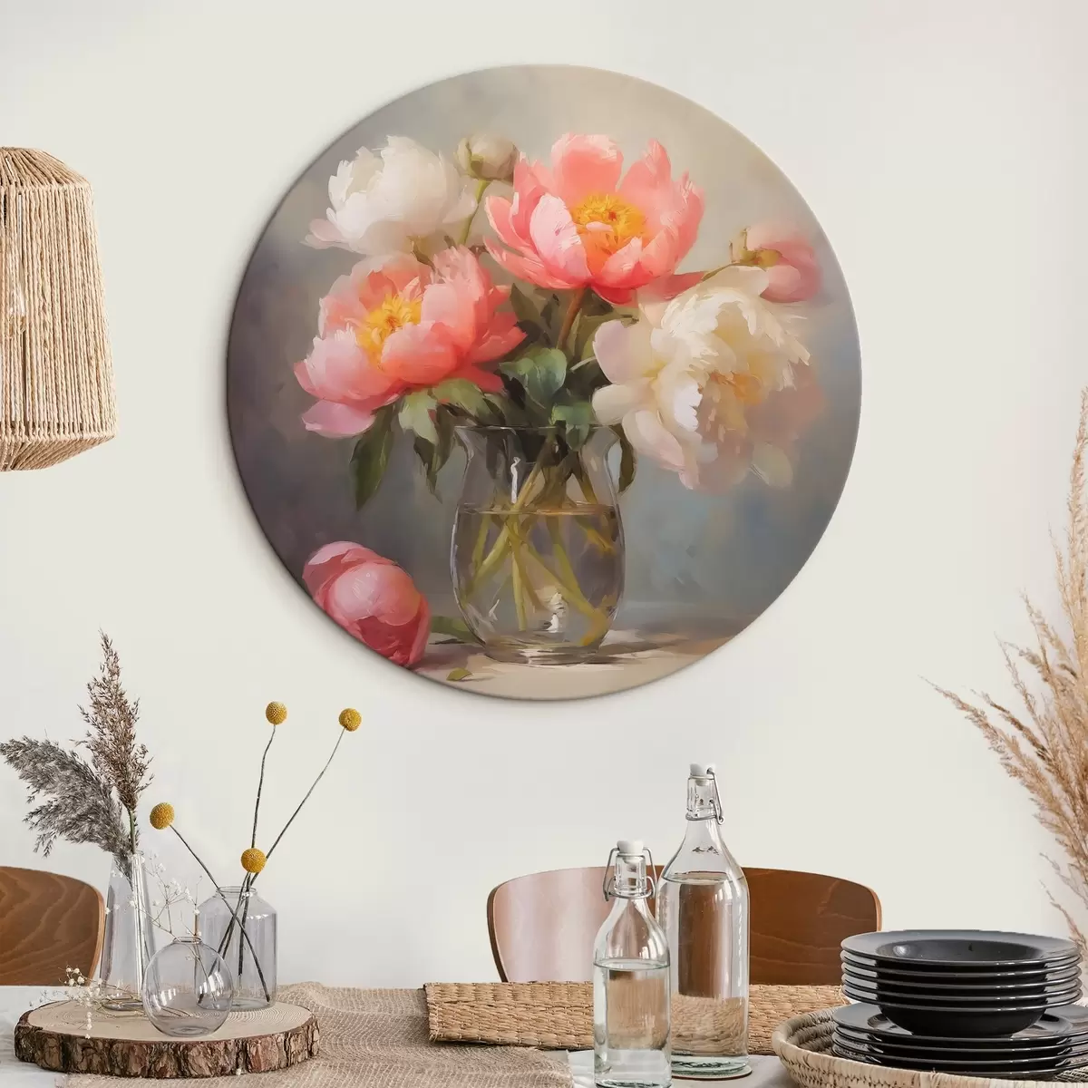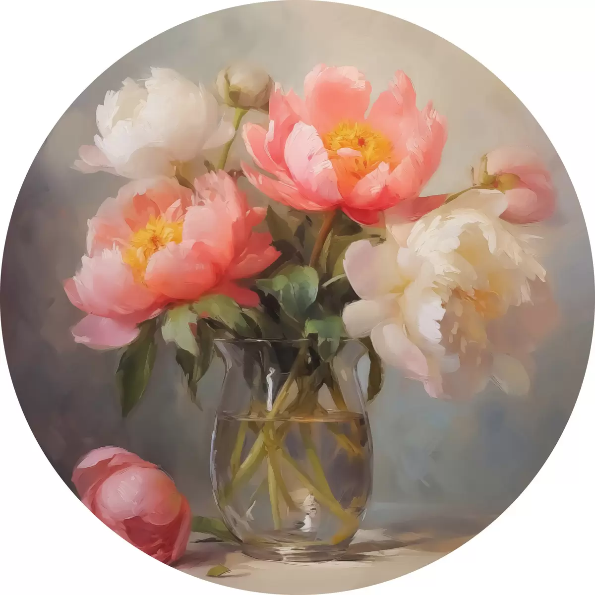 Tableaux ronds Pivoines dans un vase imitation peinture r43438