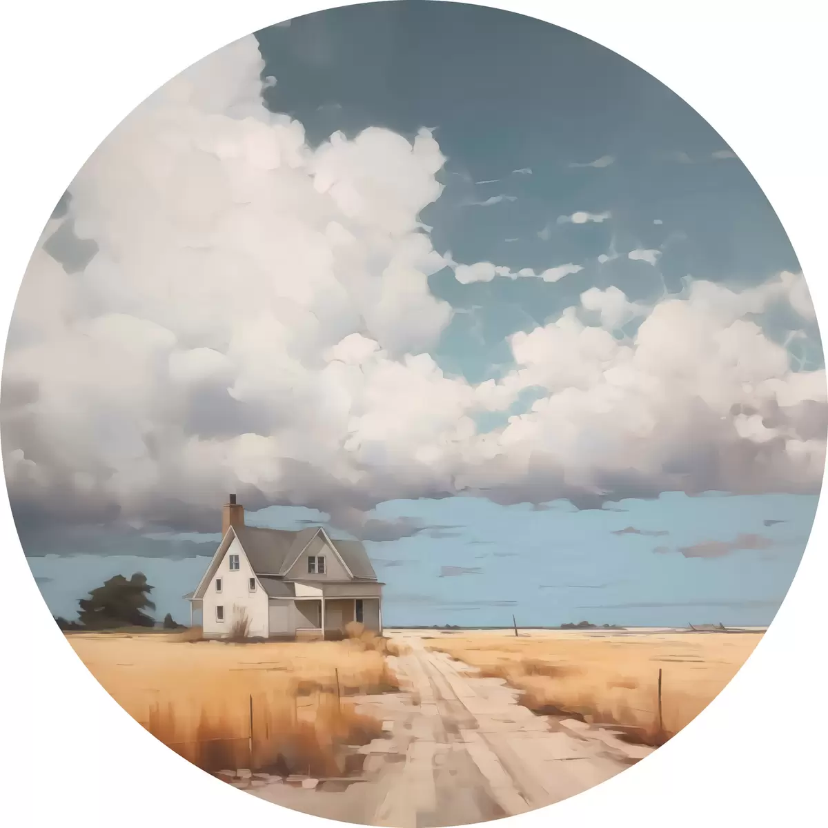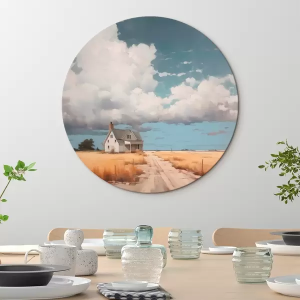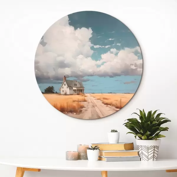 Tableaux ronds Maison dans le champ imitation de la peinture r43440