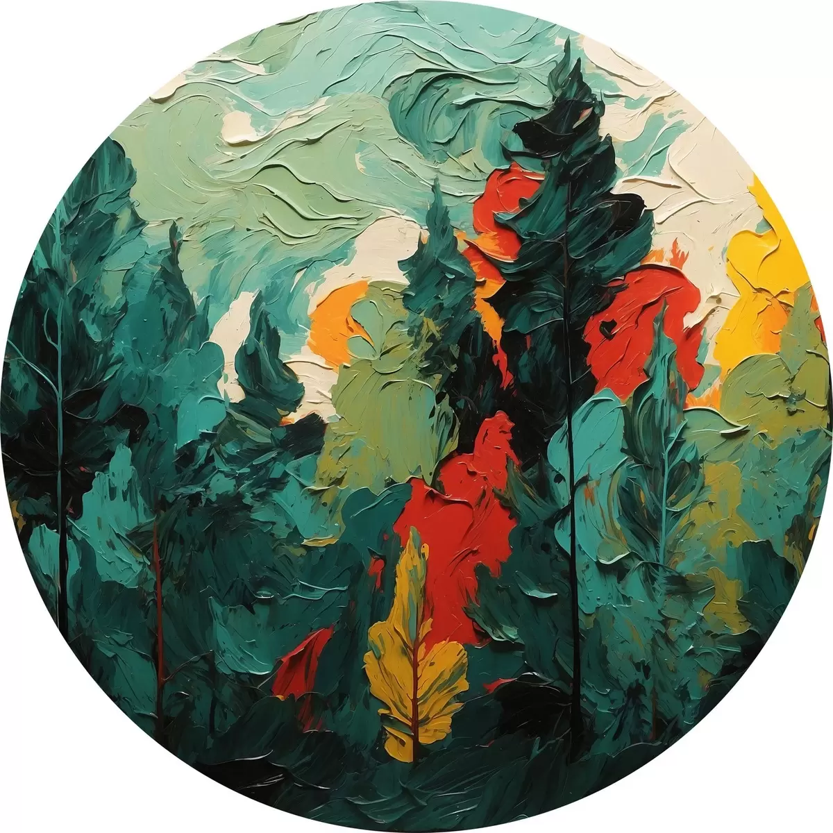Tableaux ronds Forêt noire en peinture à l'huile r43444