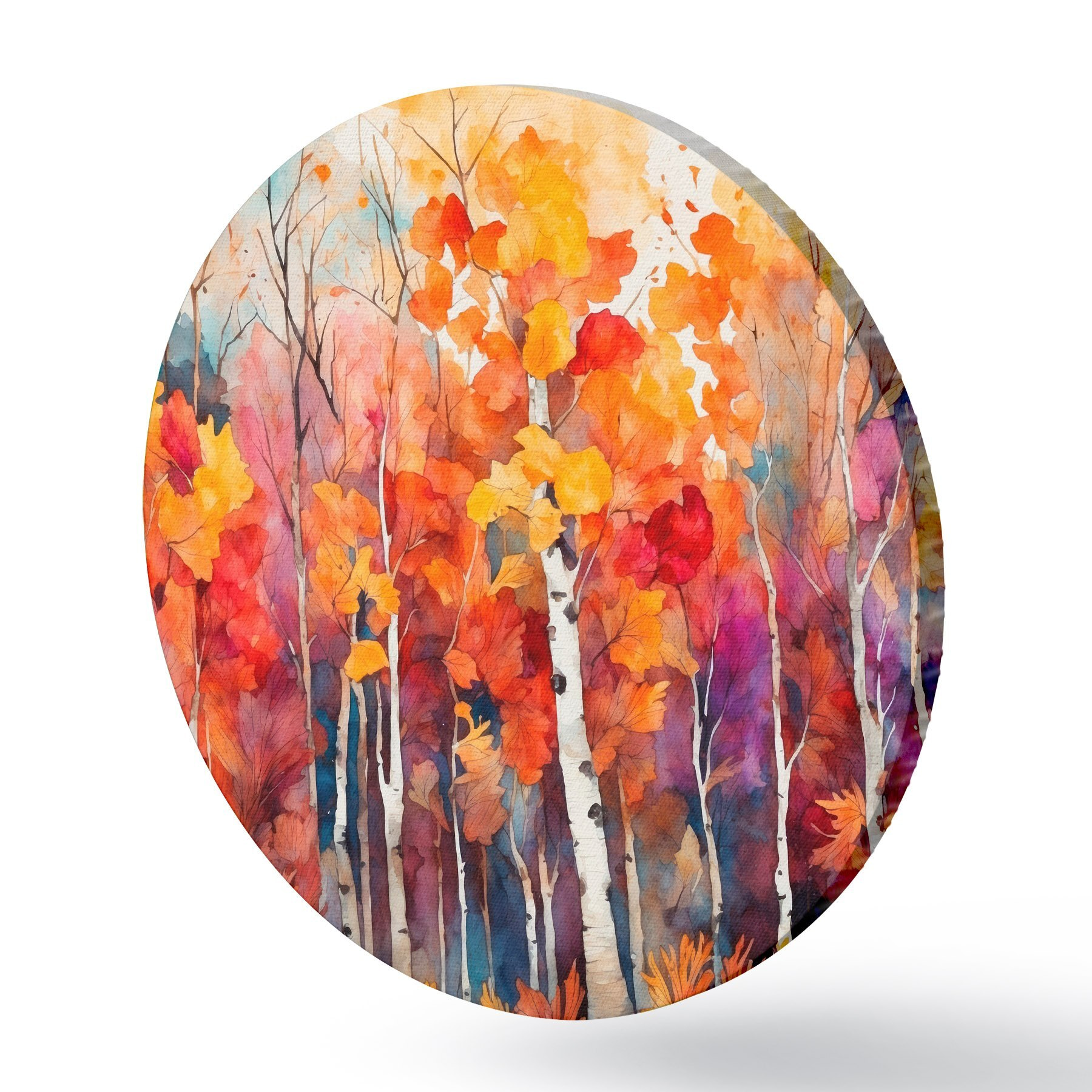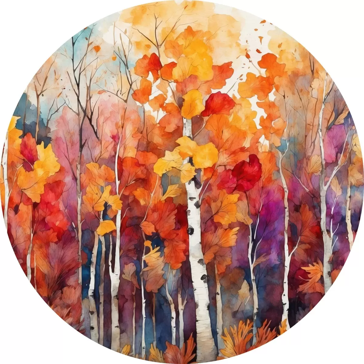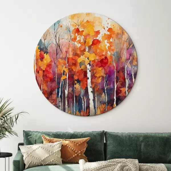 Tableaux ronds Forêt de bouleaux en style aquarelle r43447