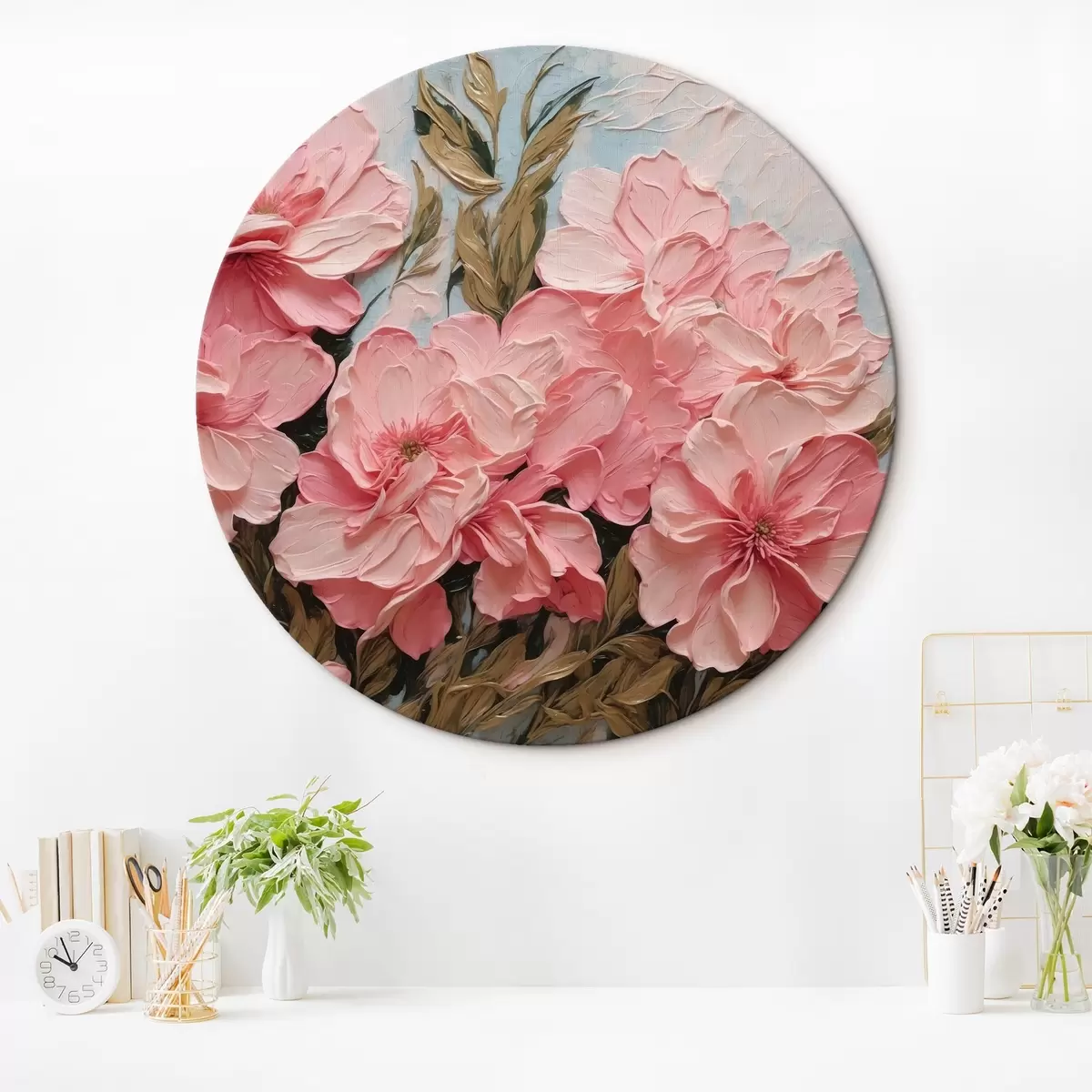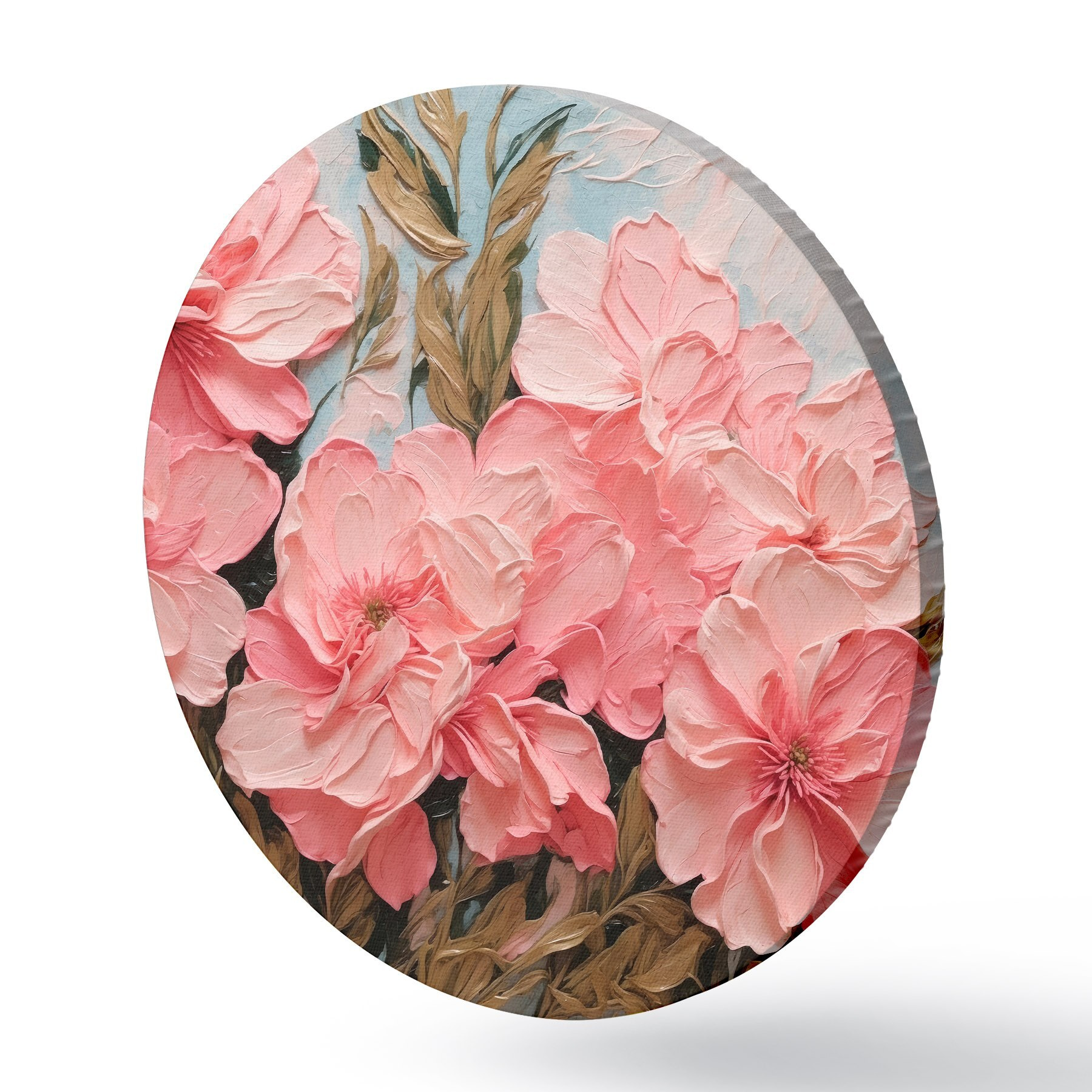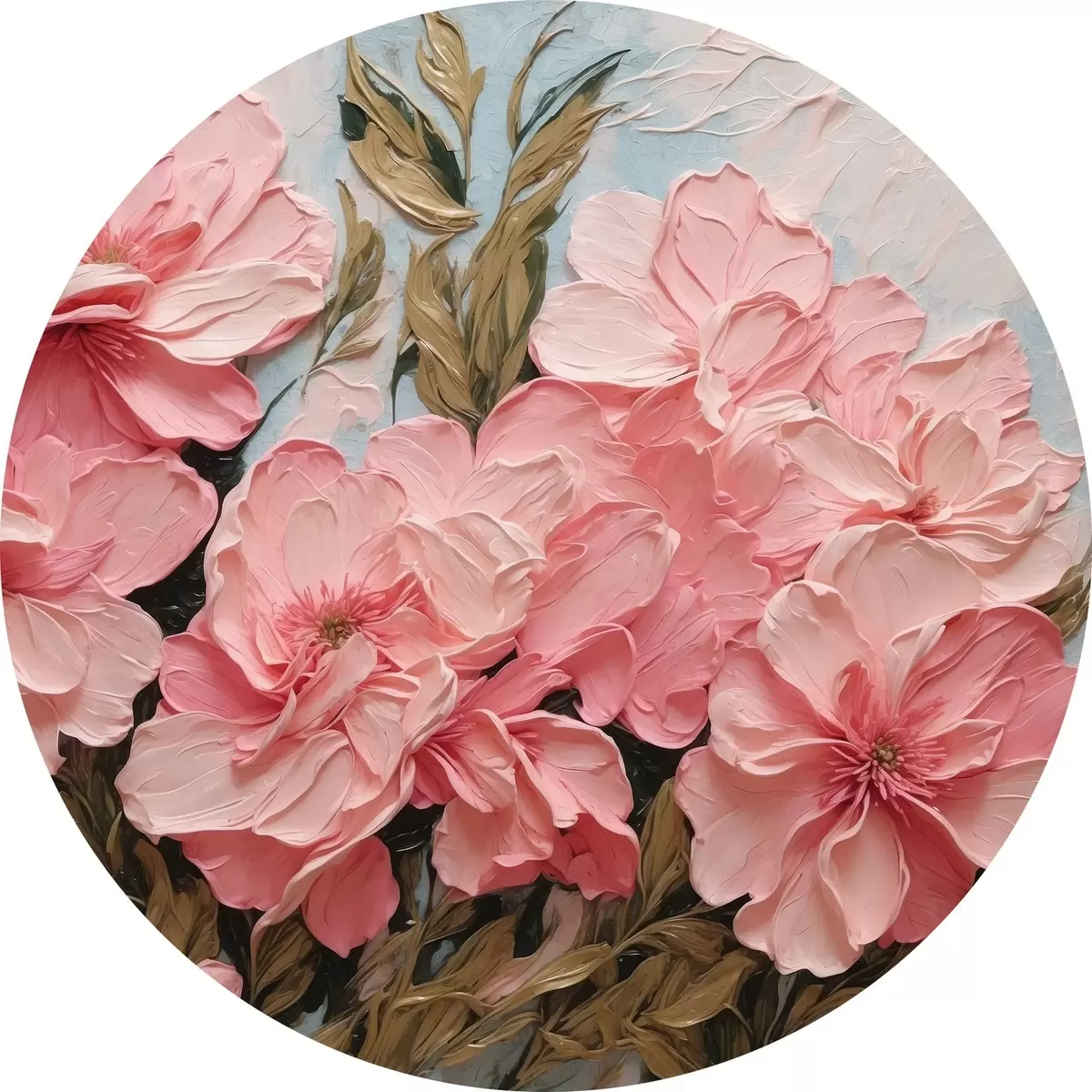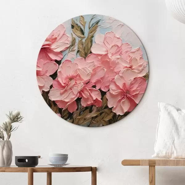Tableaux ronds Fleurs et feuilles roses en peinture à l'huile r43453
