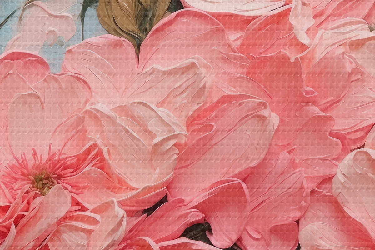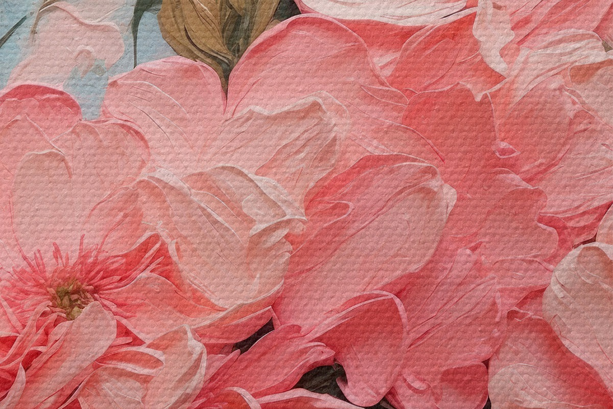 Image Fleurs et feuilles roses en peinture à l'huile Nr r43453