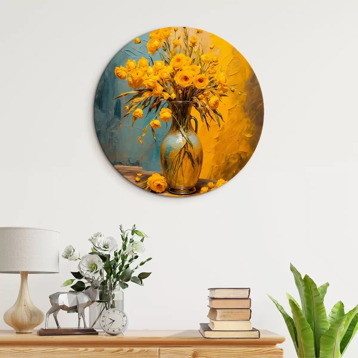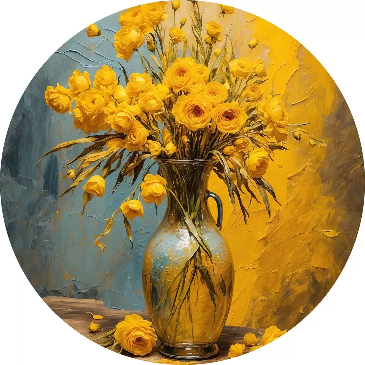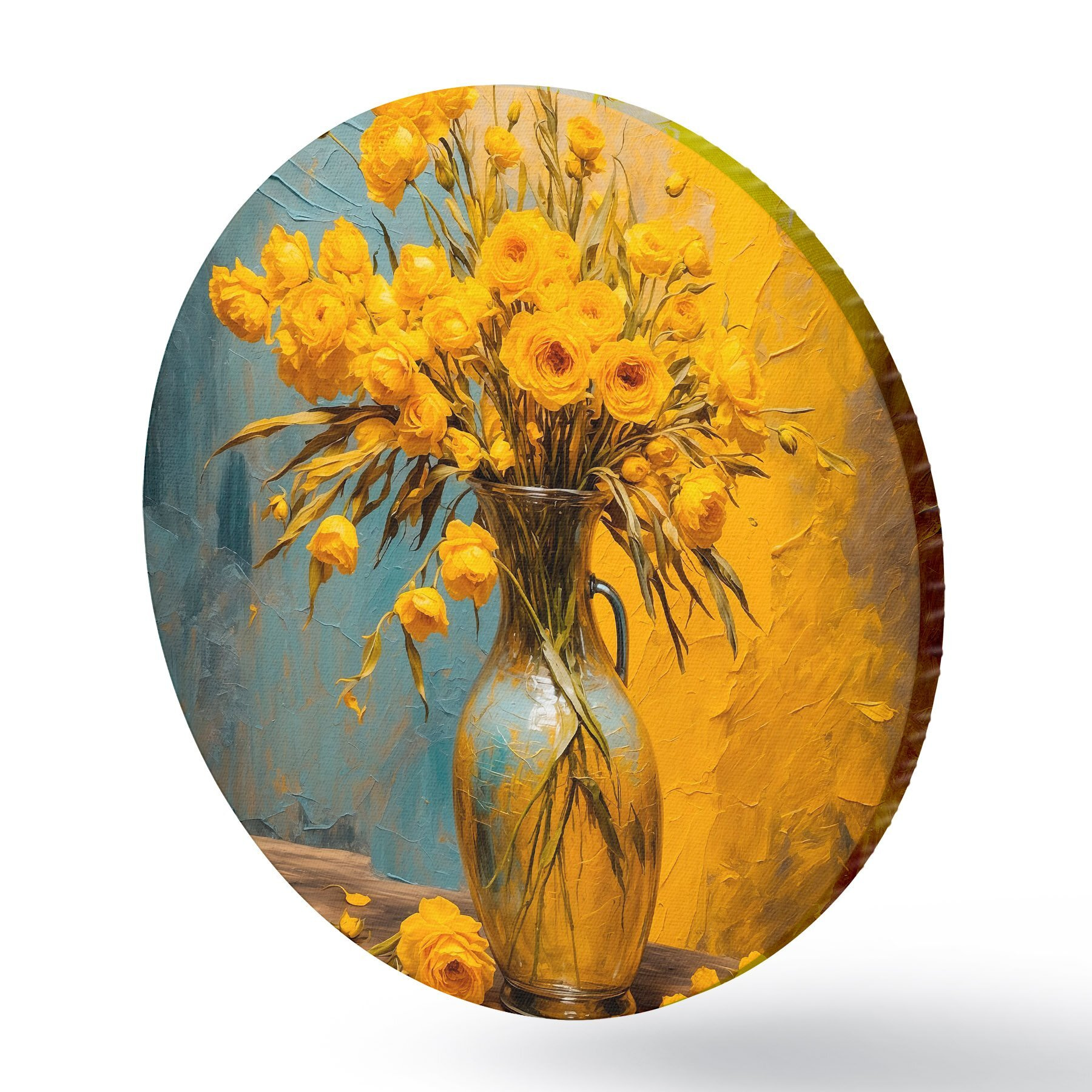 Tableaux ronds Fleurs jaunes dans un vase sur une table r43462