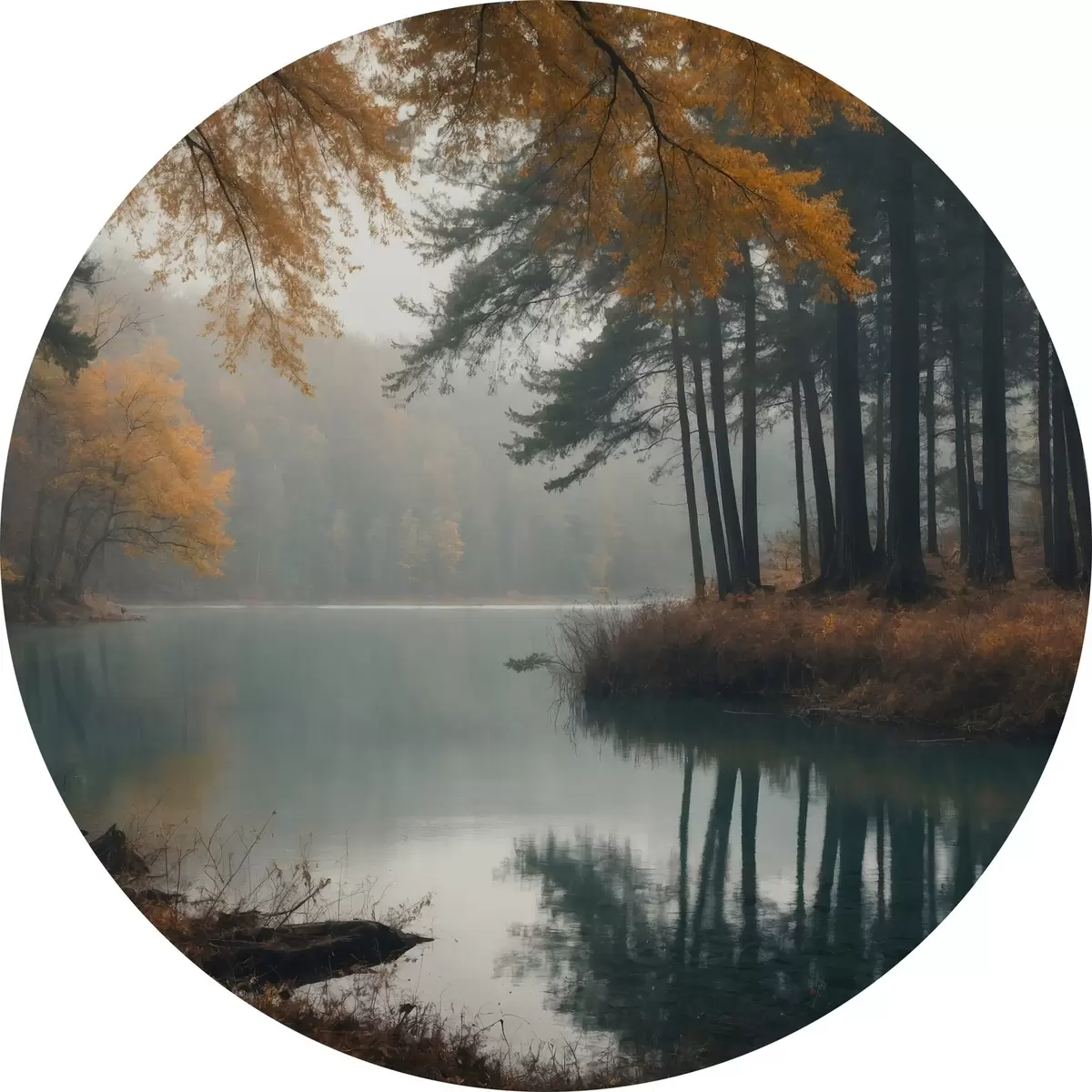Tableaux ronds Lac dans une forêt d'automne r43463