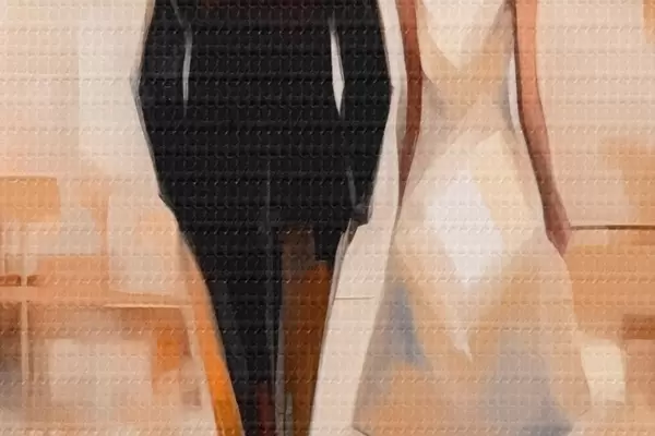 Image Abstraction avec des silhouettes de villes et deux personnages Nr r43516