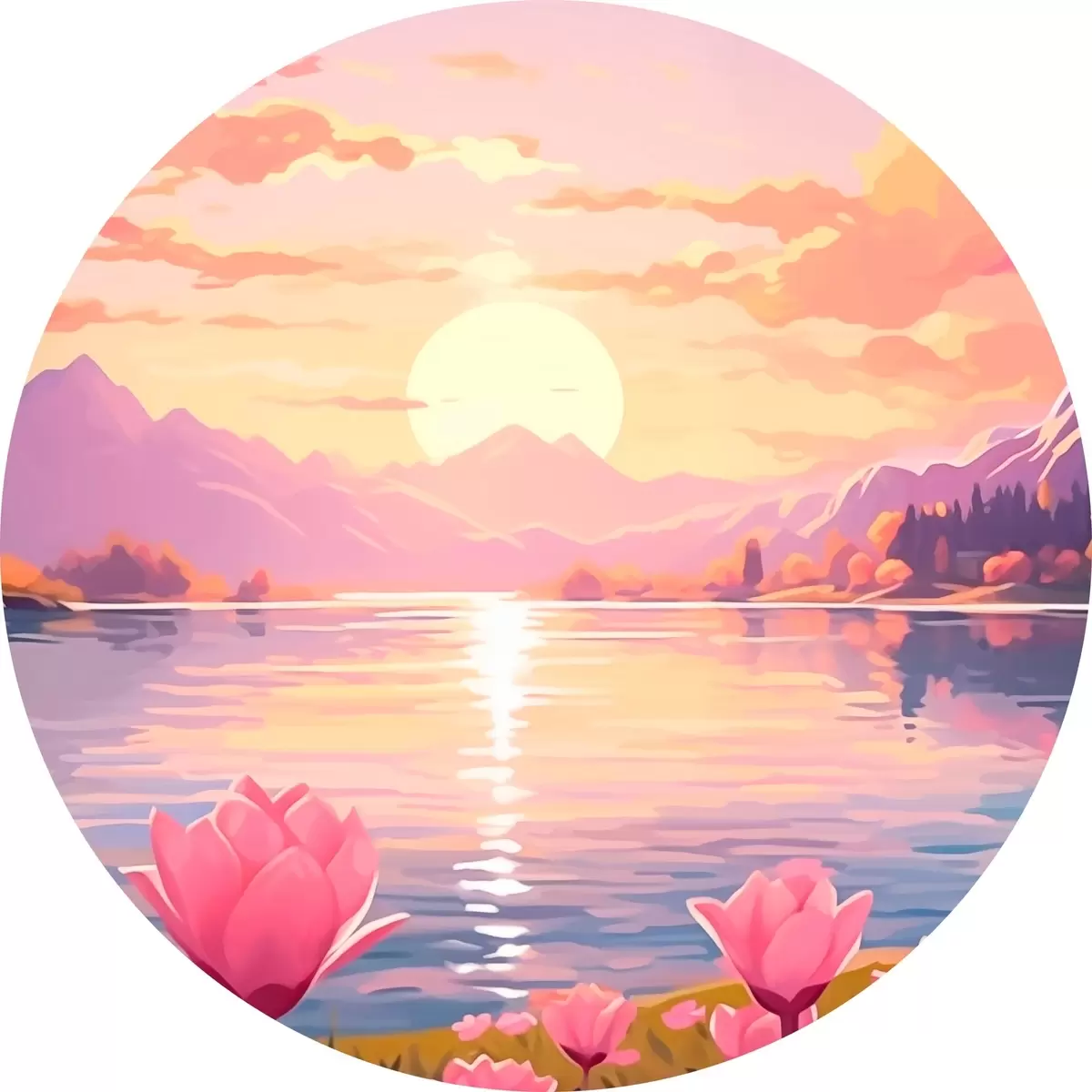 Tableaux ronds Paysage avec étang sur fond de montagnes r43523