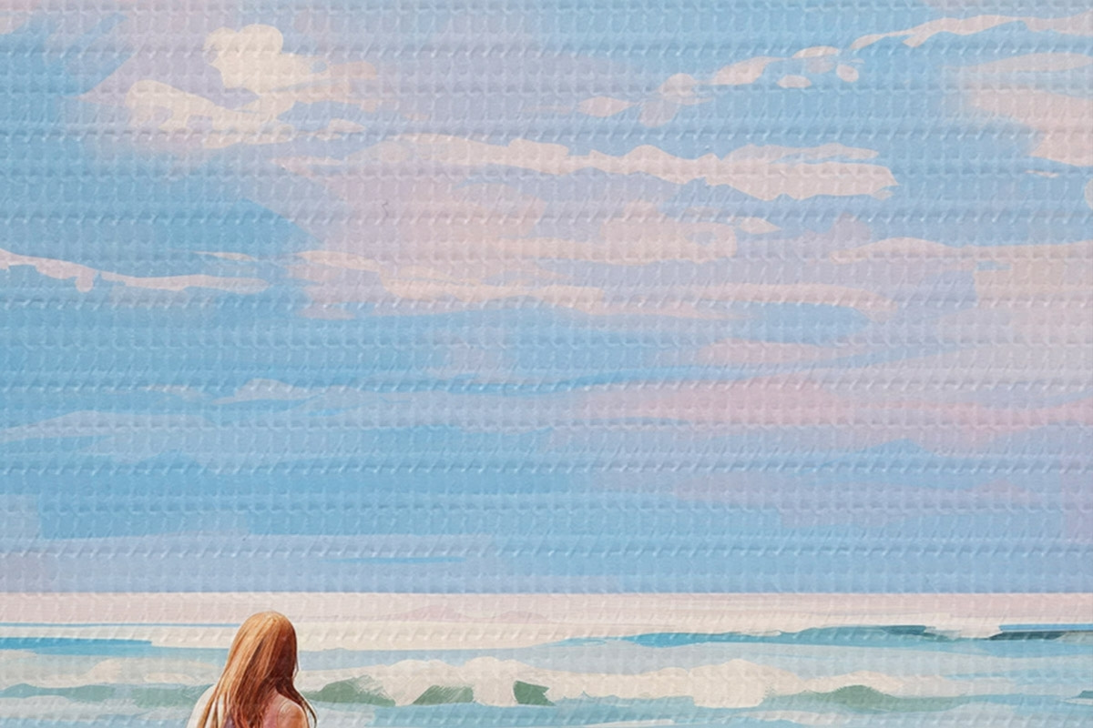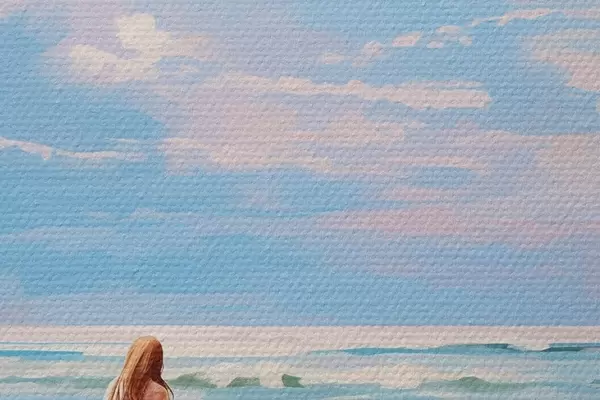 Image Fille surfant dans l'océan, été, vagues, style acrylique Nr r43882