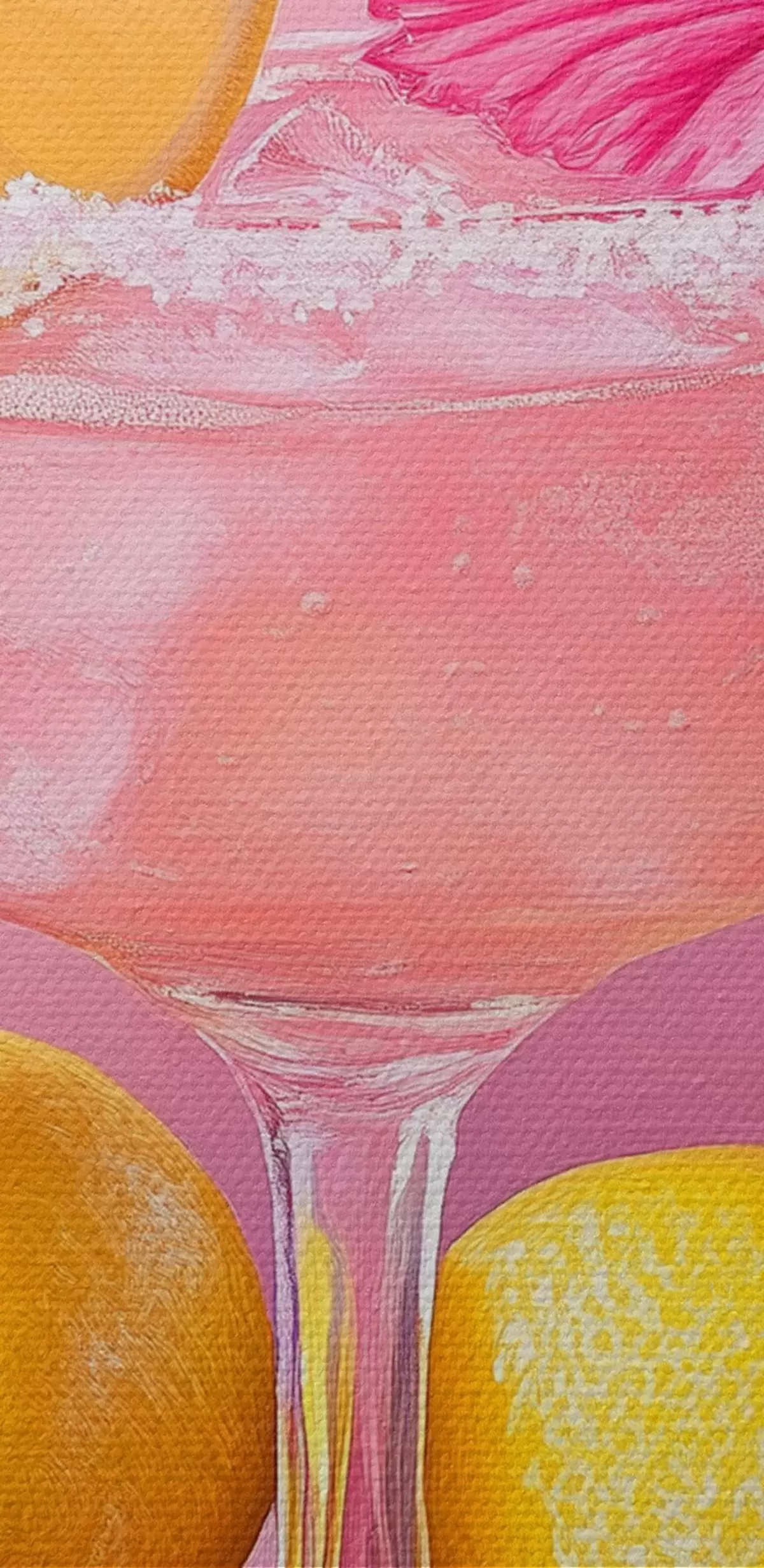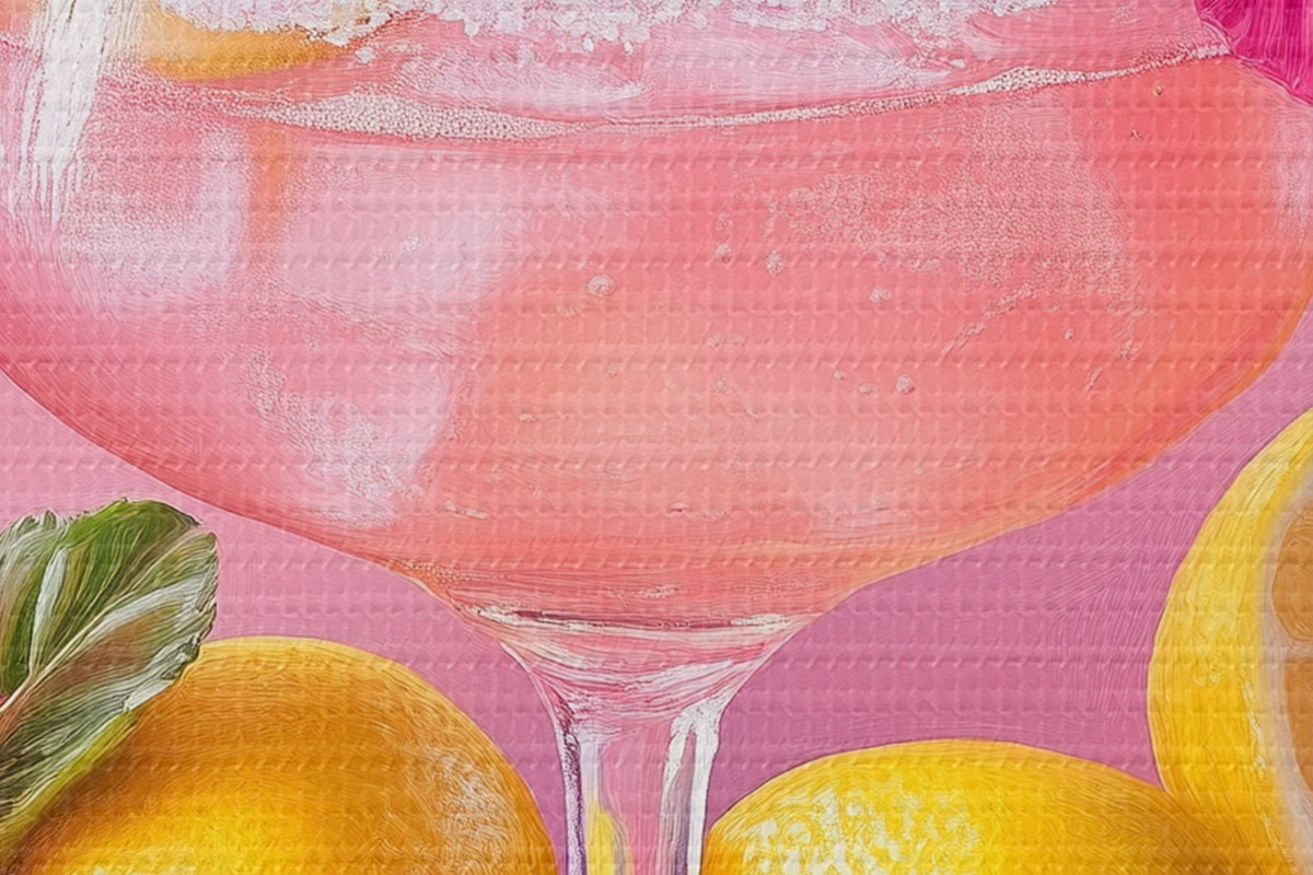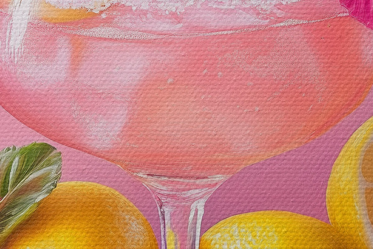 Image Cocktail d'été avec fleurs et citrons, couleurs roses, style aquarelle Nr r43895