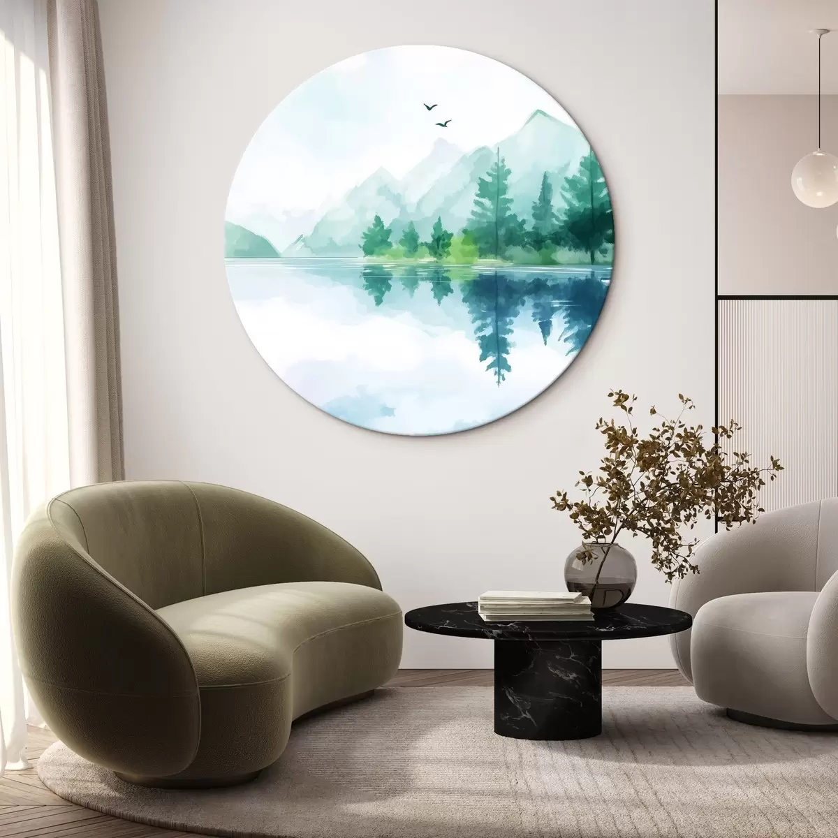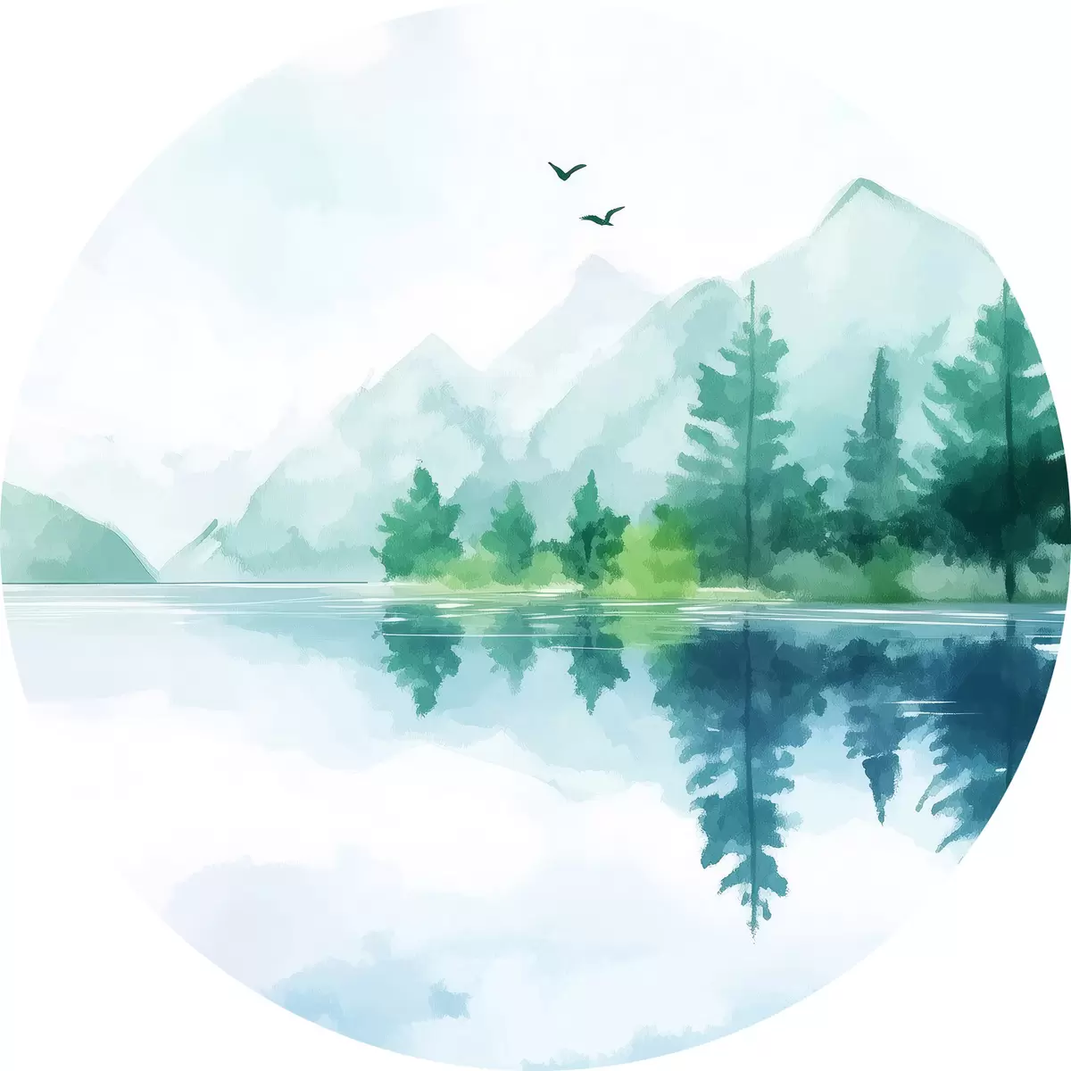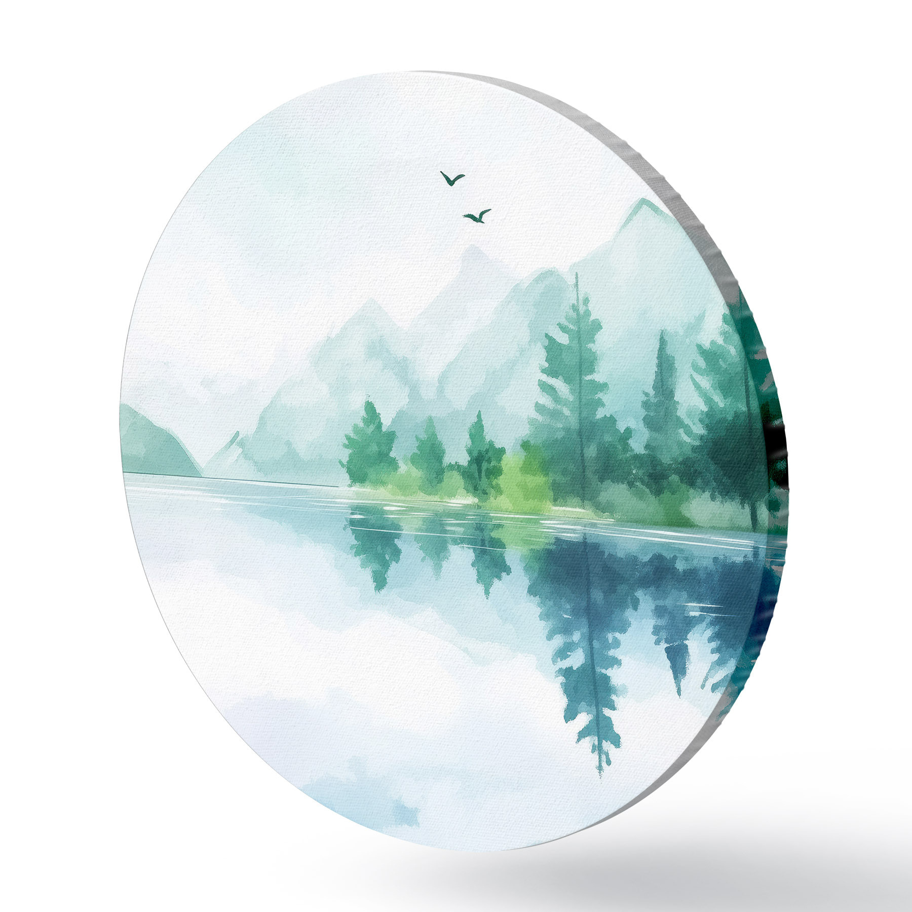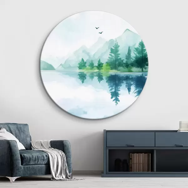 Tableaux ronds Lac près de la montagne en style aquarelle r43922