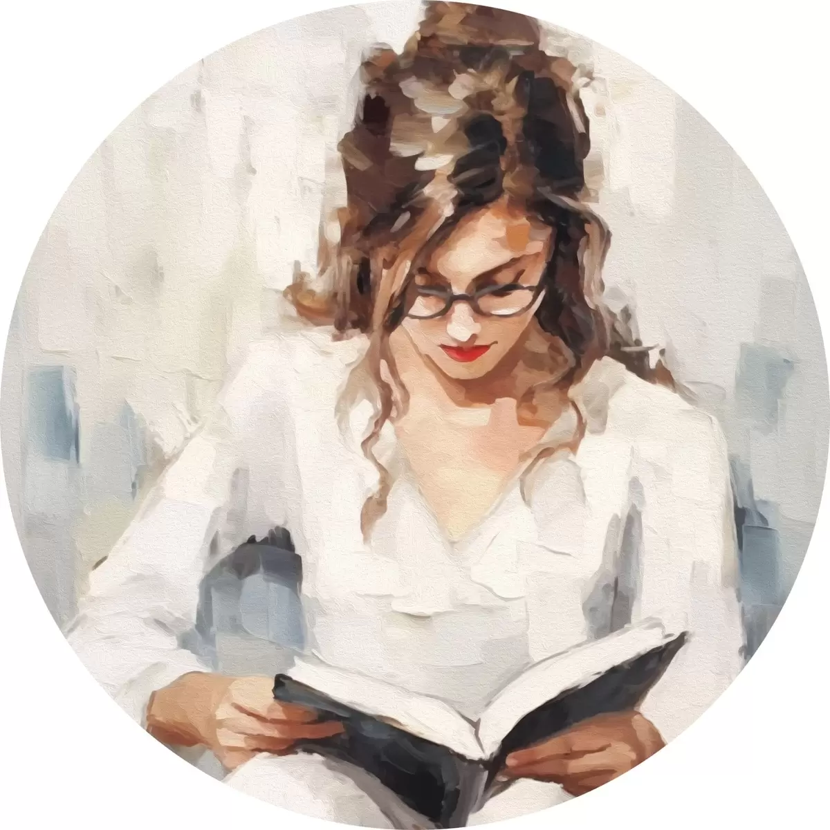 Tableaux ronds Fille avec un livre r43937