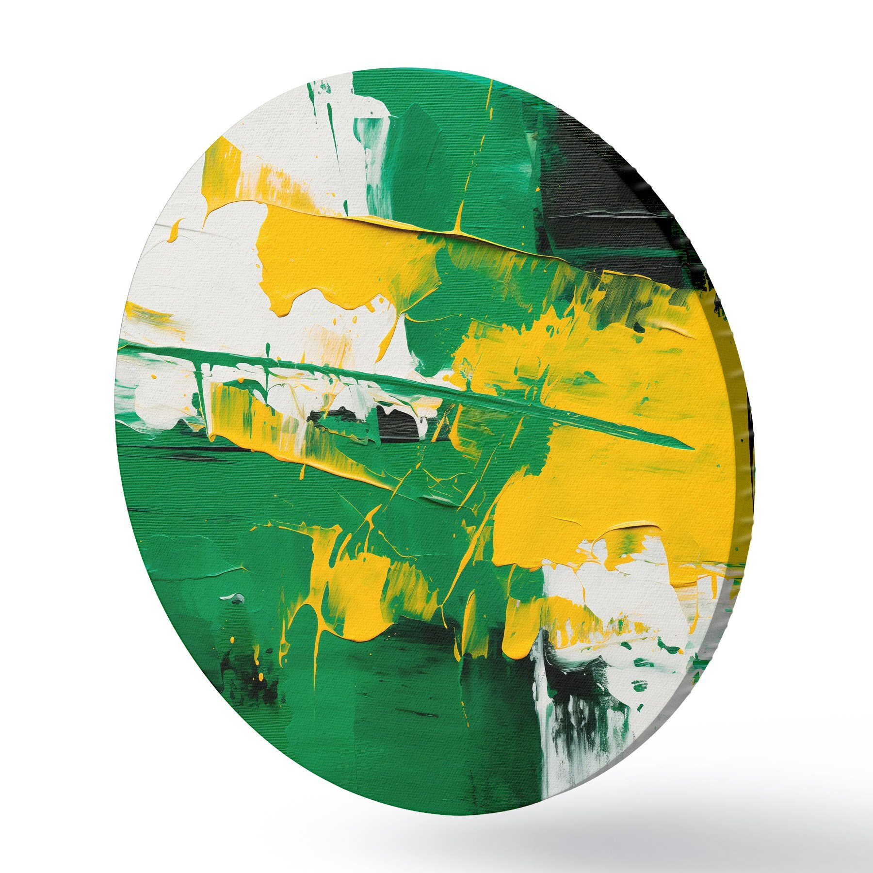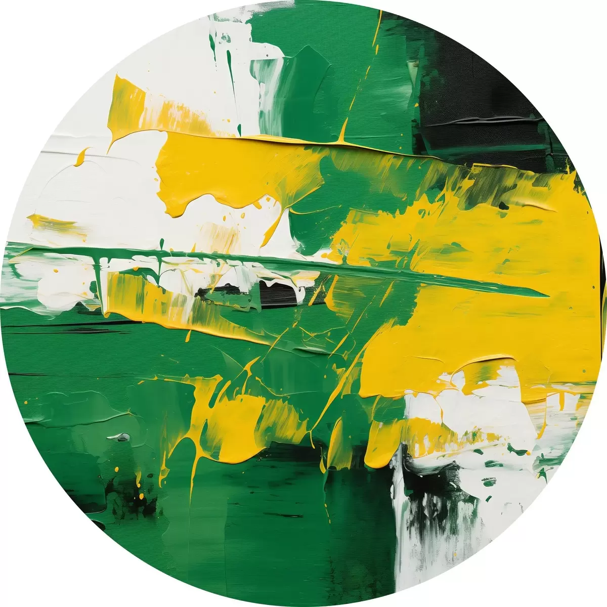 Tableaux ronds Peinture à l'huile abstraite en blanc, vert et jaune dans le style de la peinture à l'huile r43944