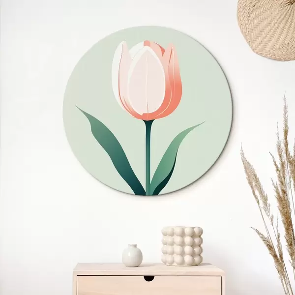 Tableaux ronds Tulipe peinte sur fond vert clair r44000