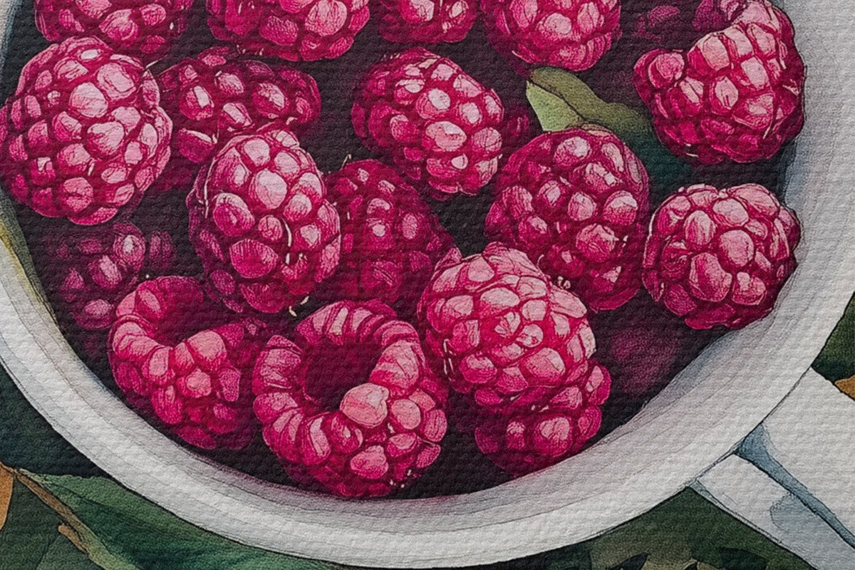 Image Framboises juteuses dans la forêt, rustique, feuilles, style aquarelle Nr r44023