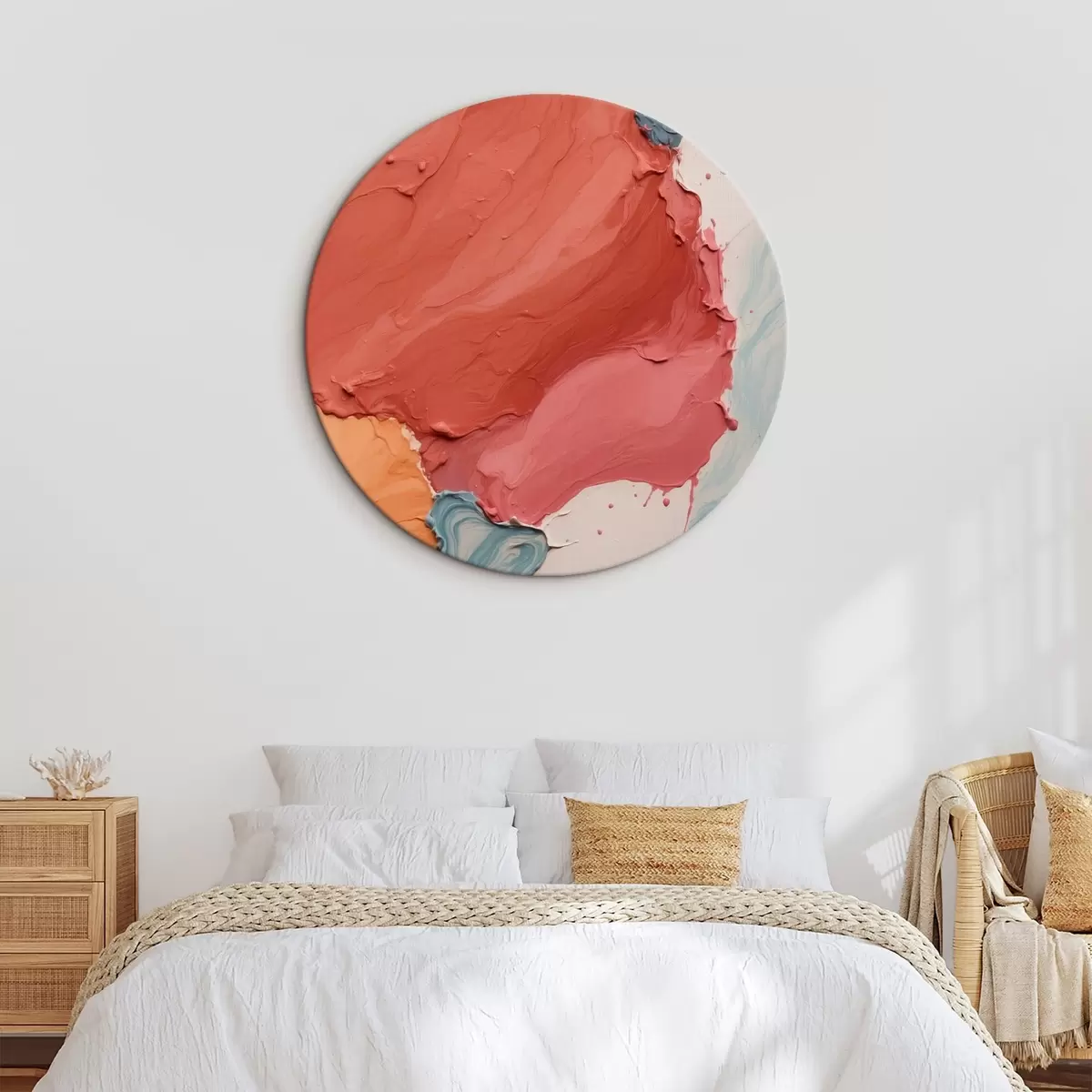 Tableaux ronds Peinture à l'huile abstraite avec des couleurs rouge, jaune et bleu r44068