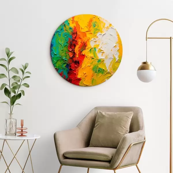 Tableaux ronds Peinture à l'huile abstraite avec des couleurs arc-en-ciel r44073