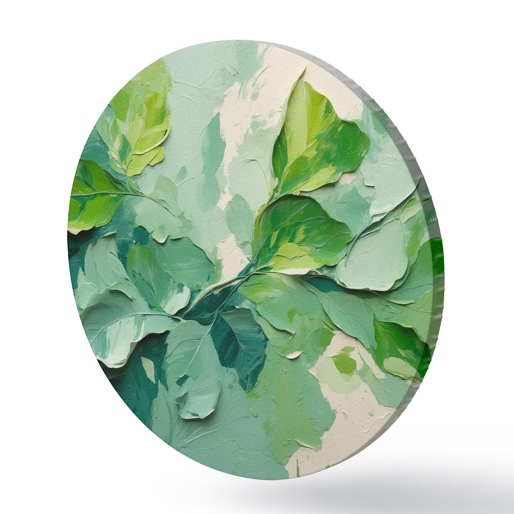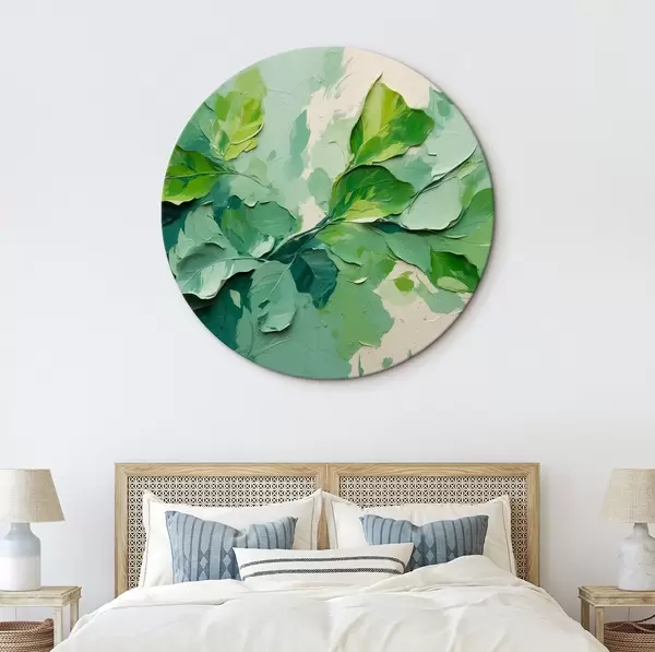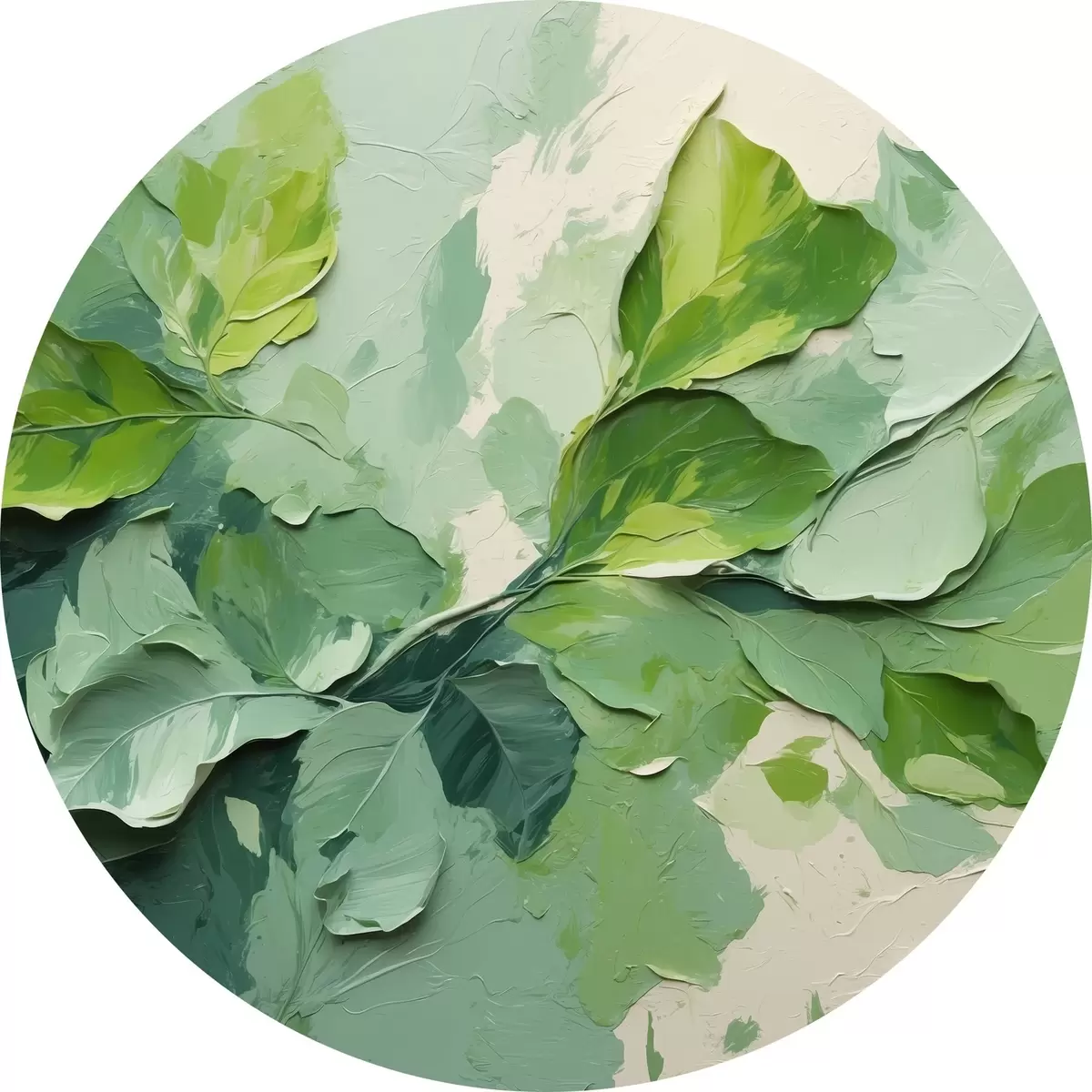 Tableaux ronds Branche avec feuilles vertes en peinture à l'huile r44075