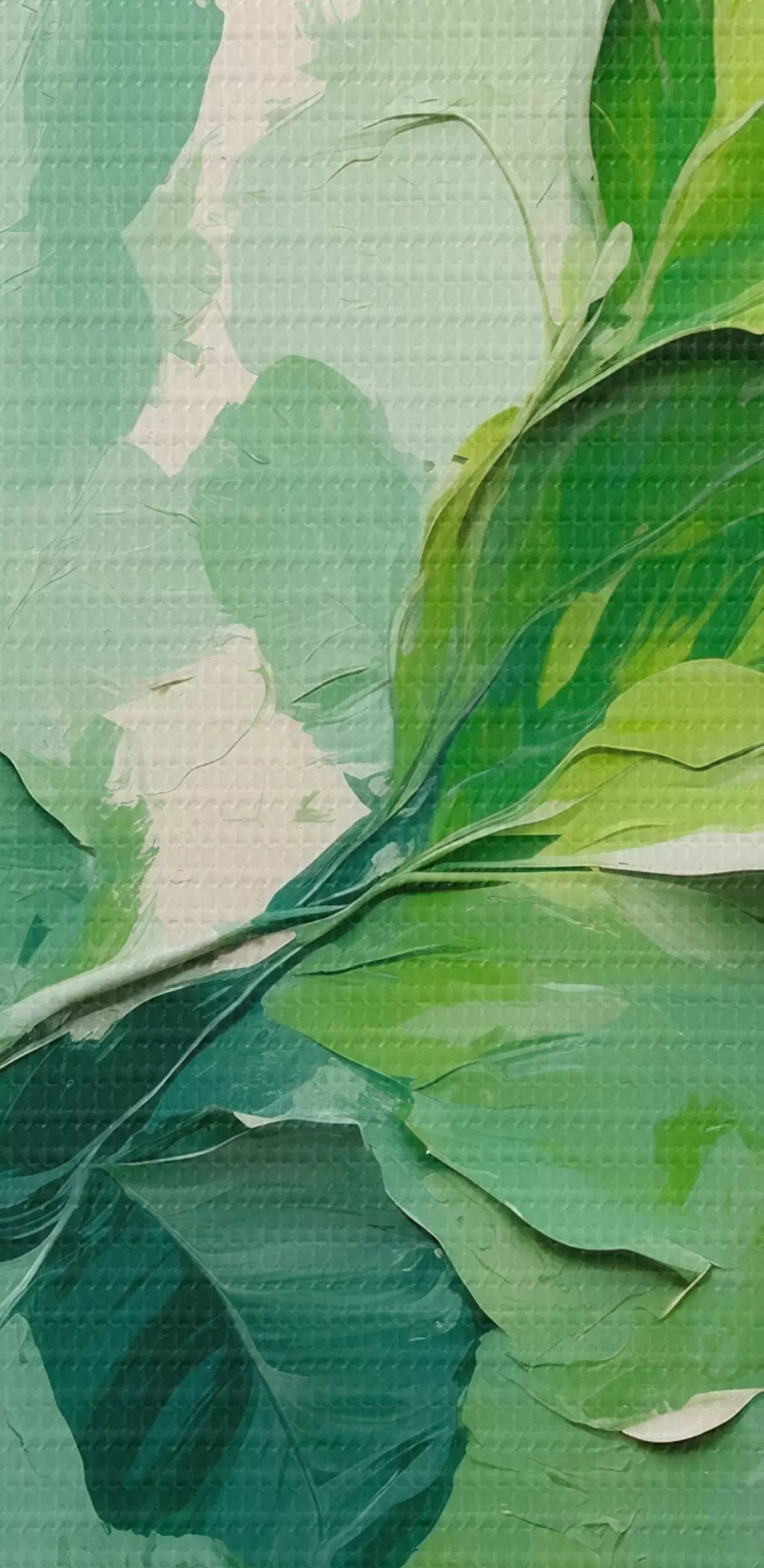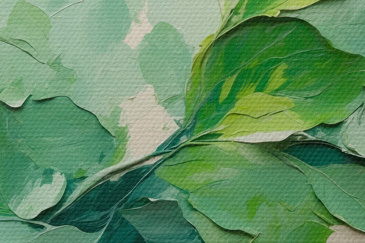 Image Branche avec feuilles vertes en peinture à l'huile Nr r44075