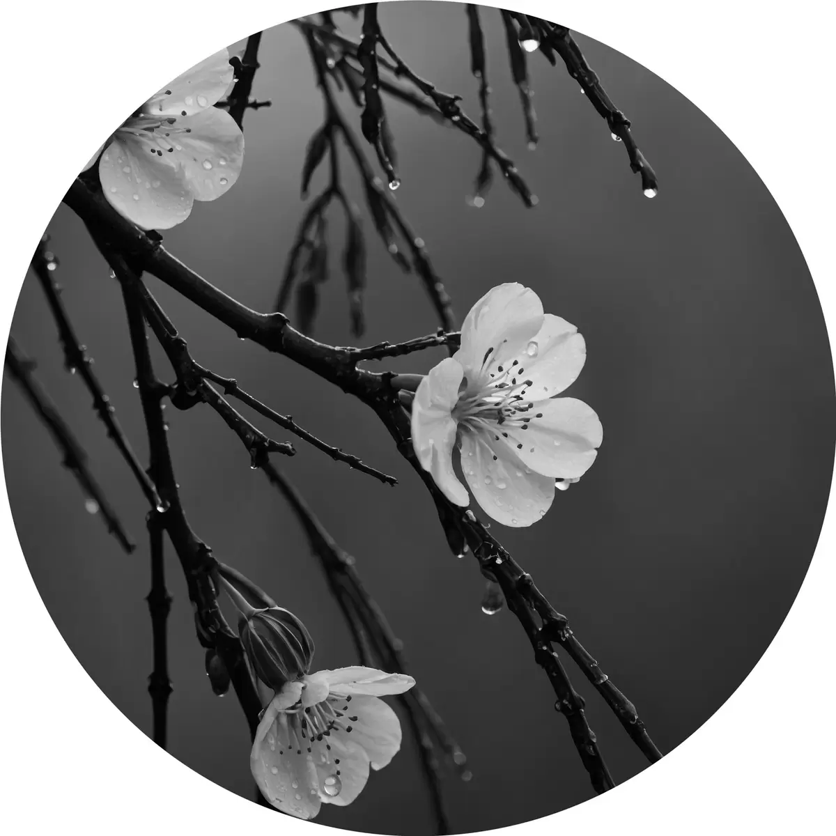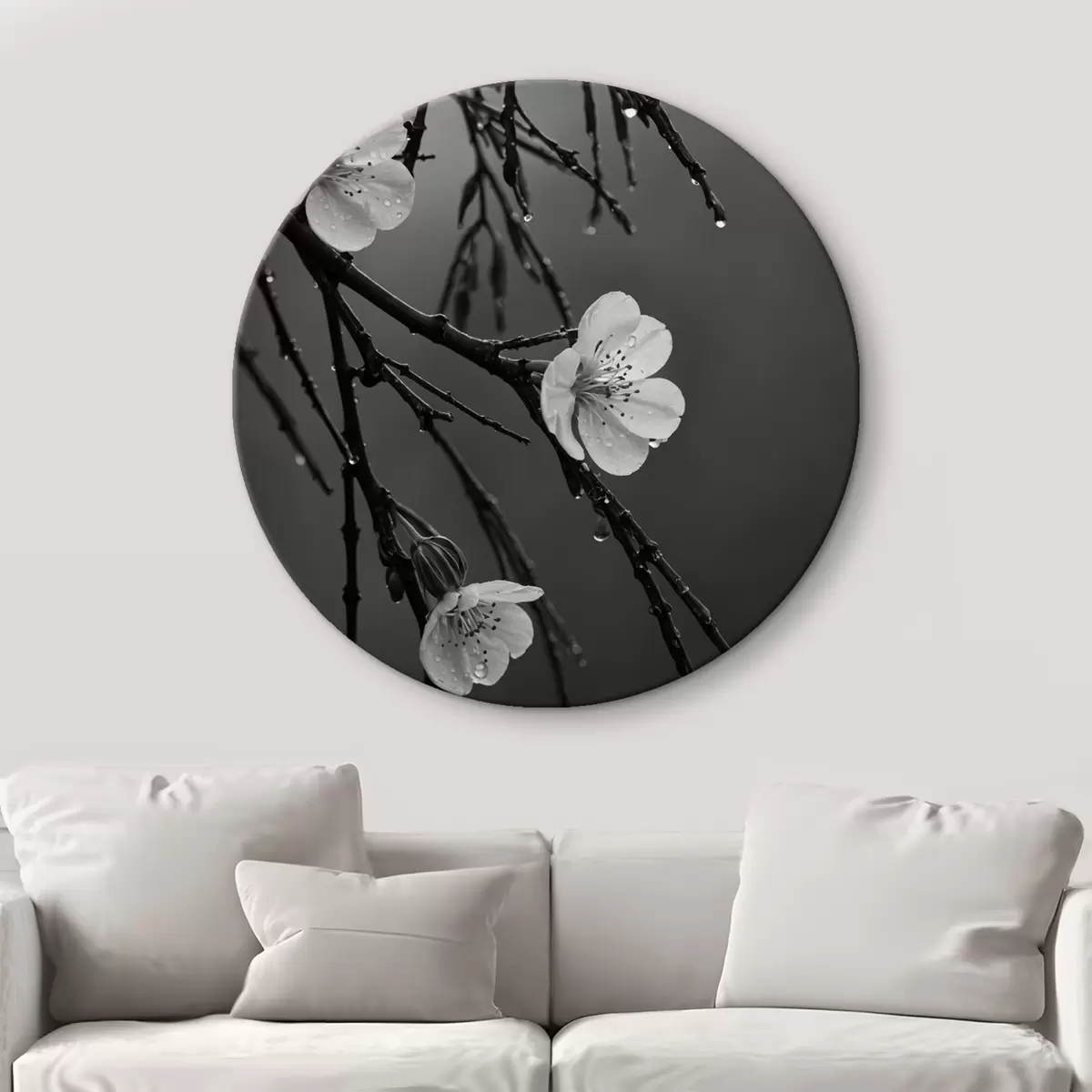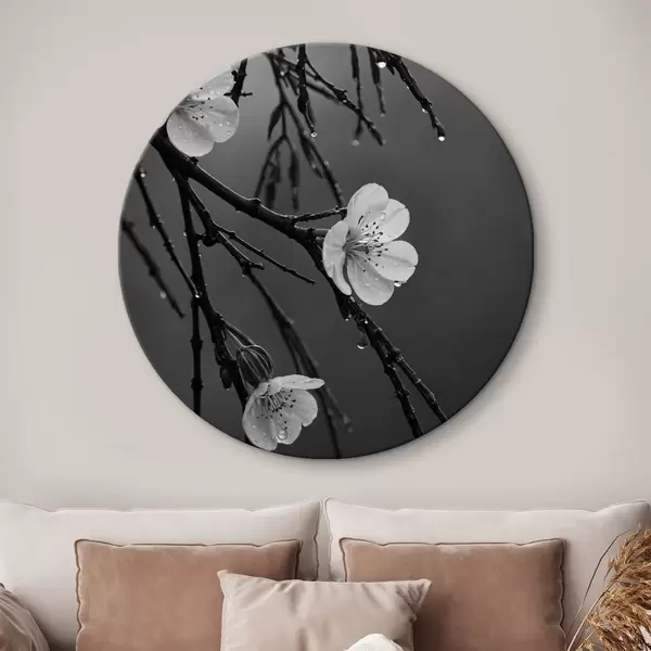 Tableaux ronds Fleurs sur les branches après la pluie r44098