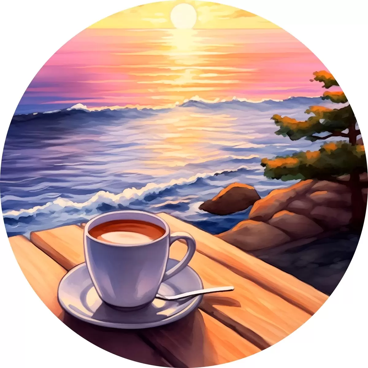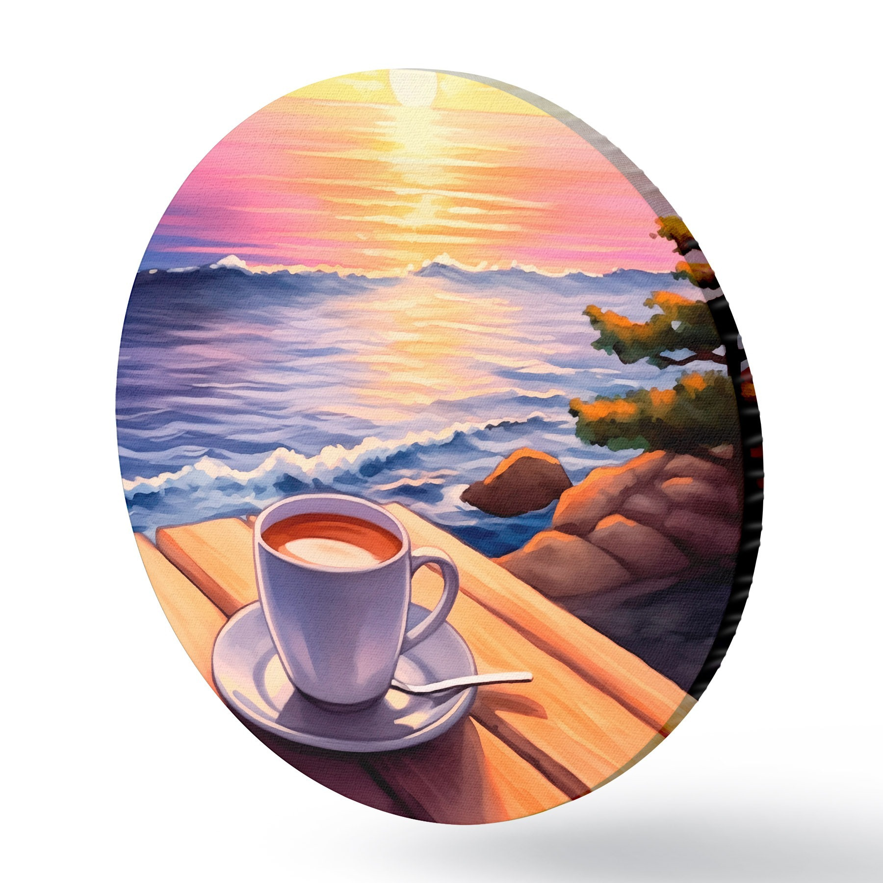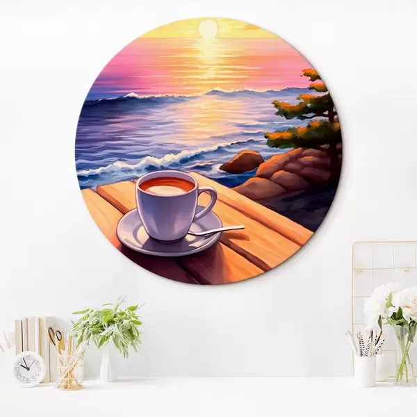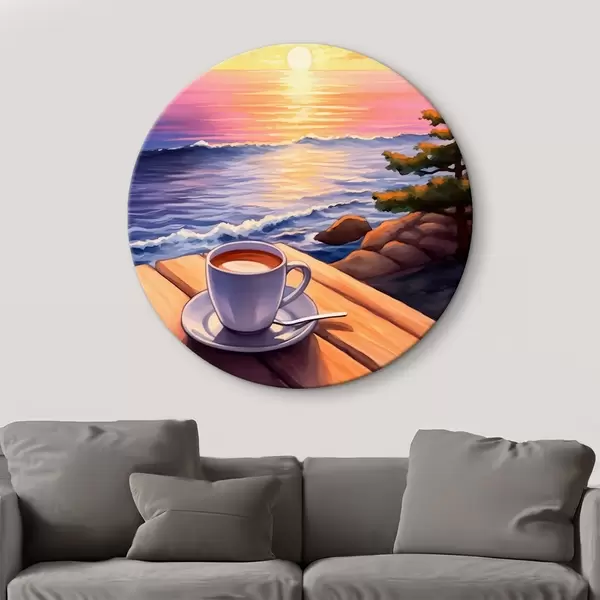 Tableaux ronds Tasse de café sur fond de paysage r44105