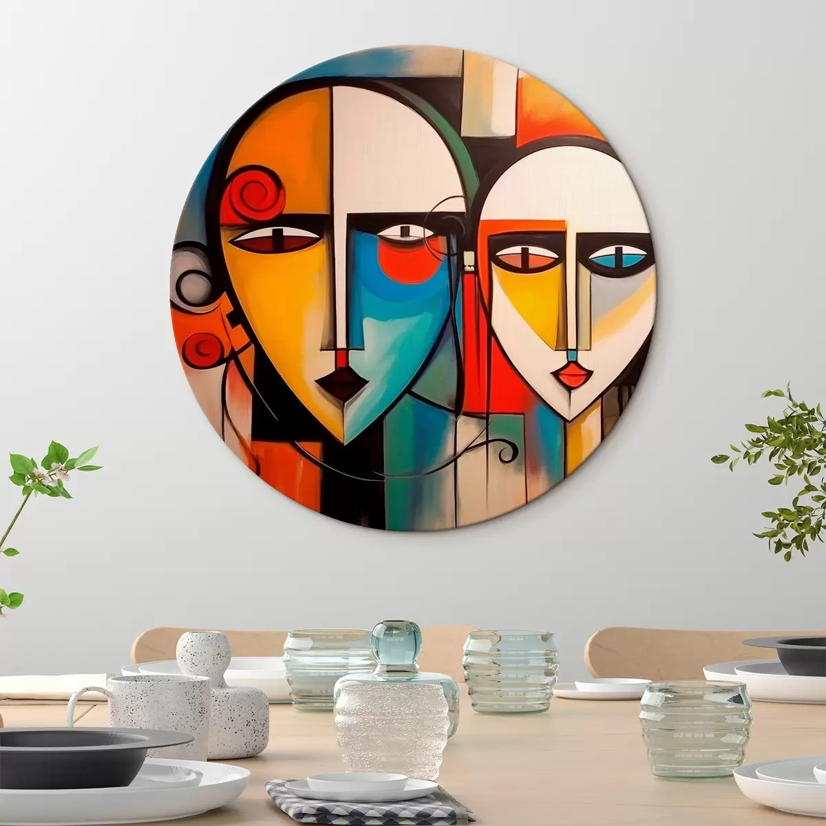 Tableaux ronds Visages abstraits r44118
