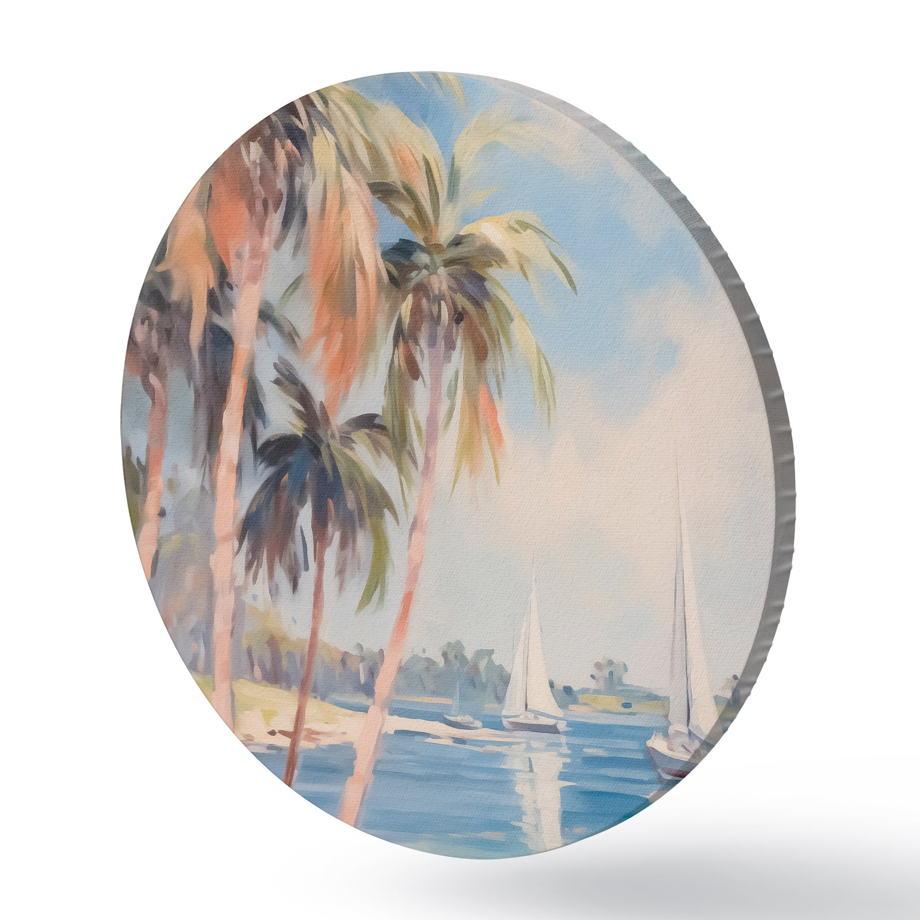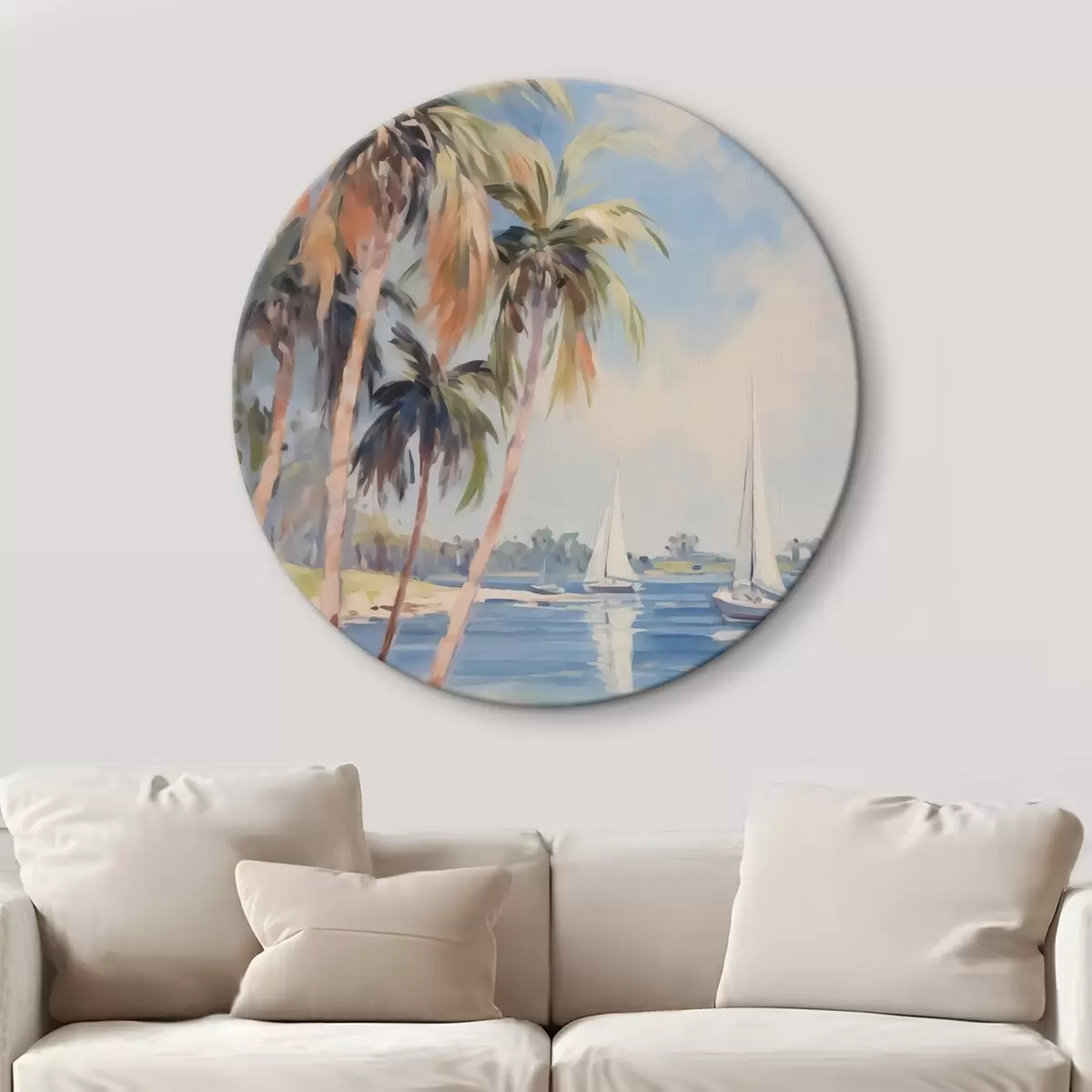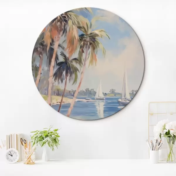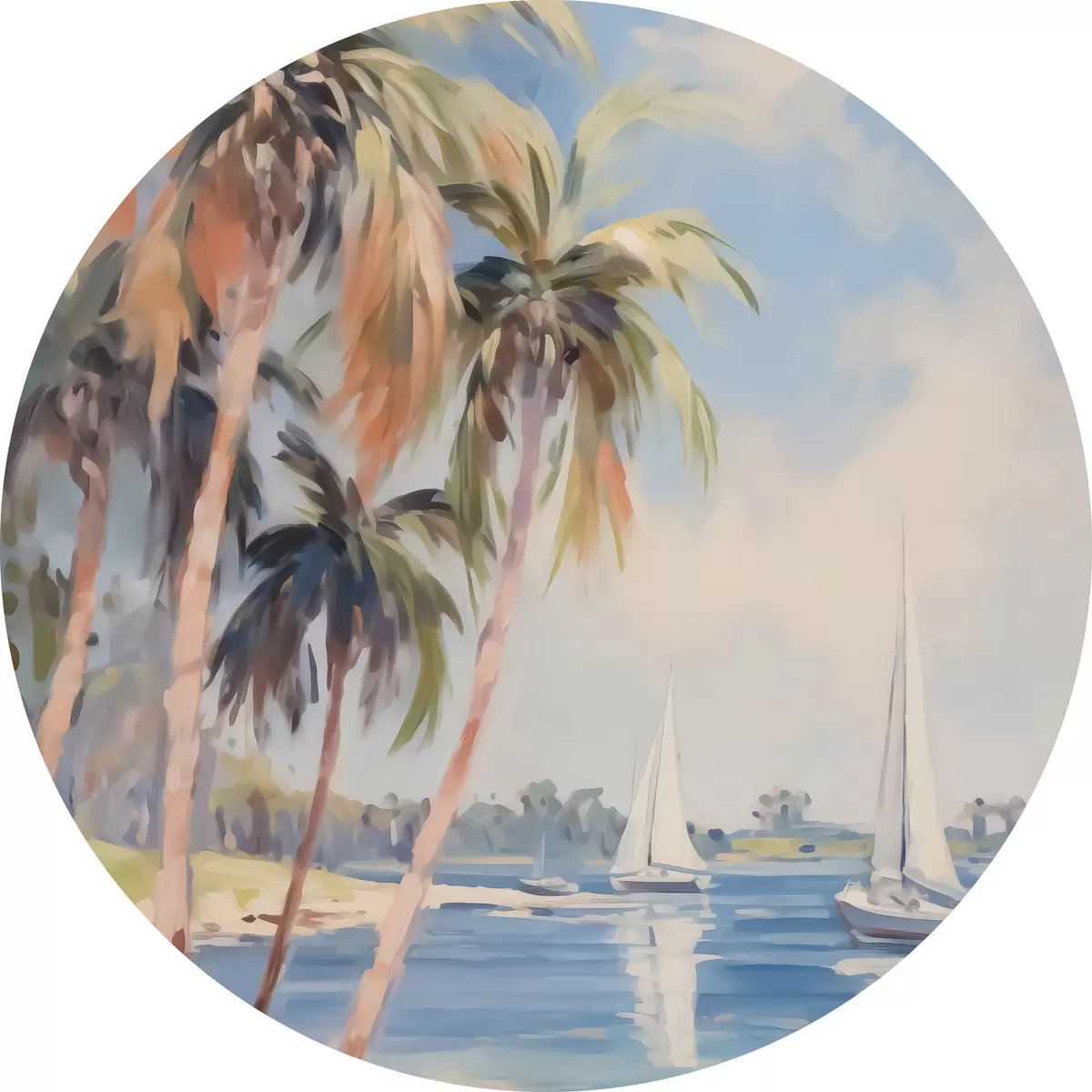 Tableaux ronds Palmiers de la baie imitation de peinture r44122