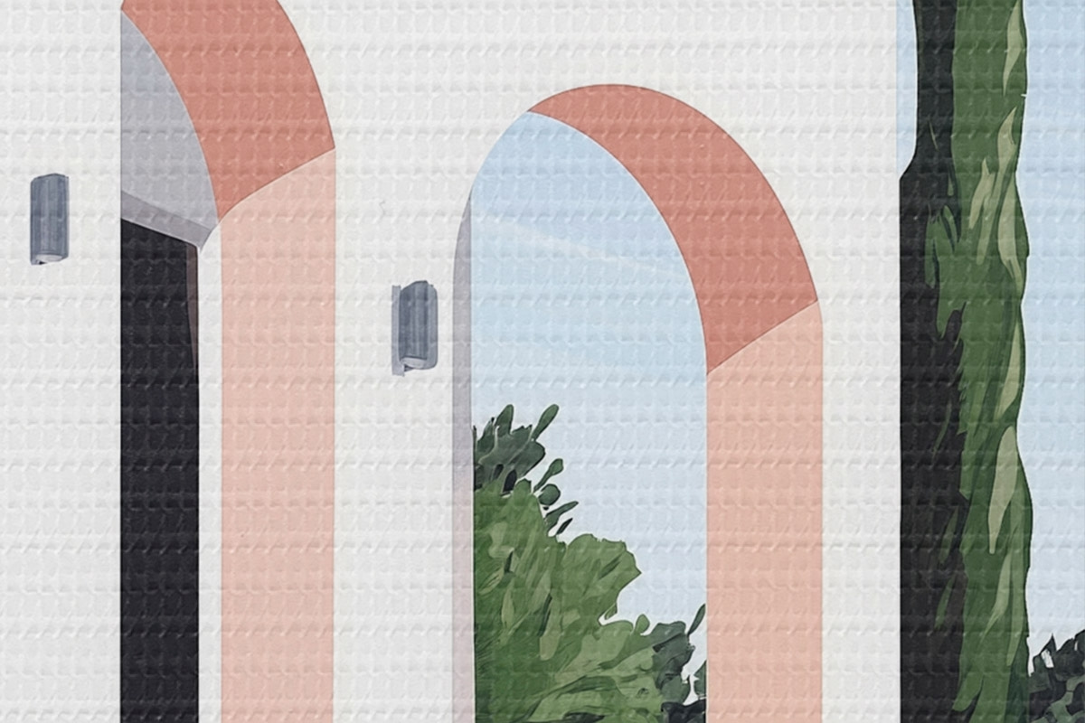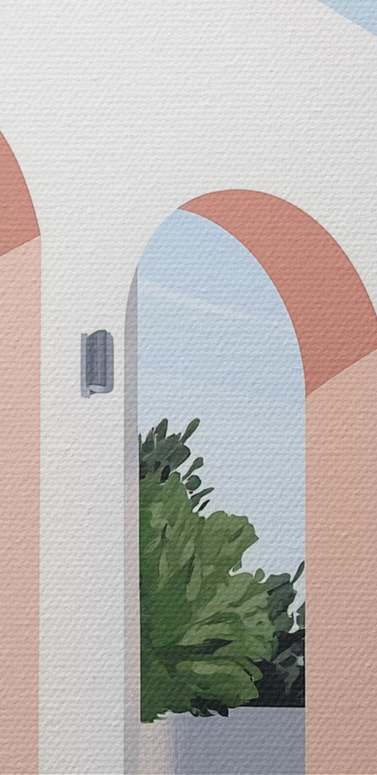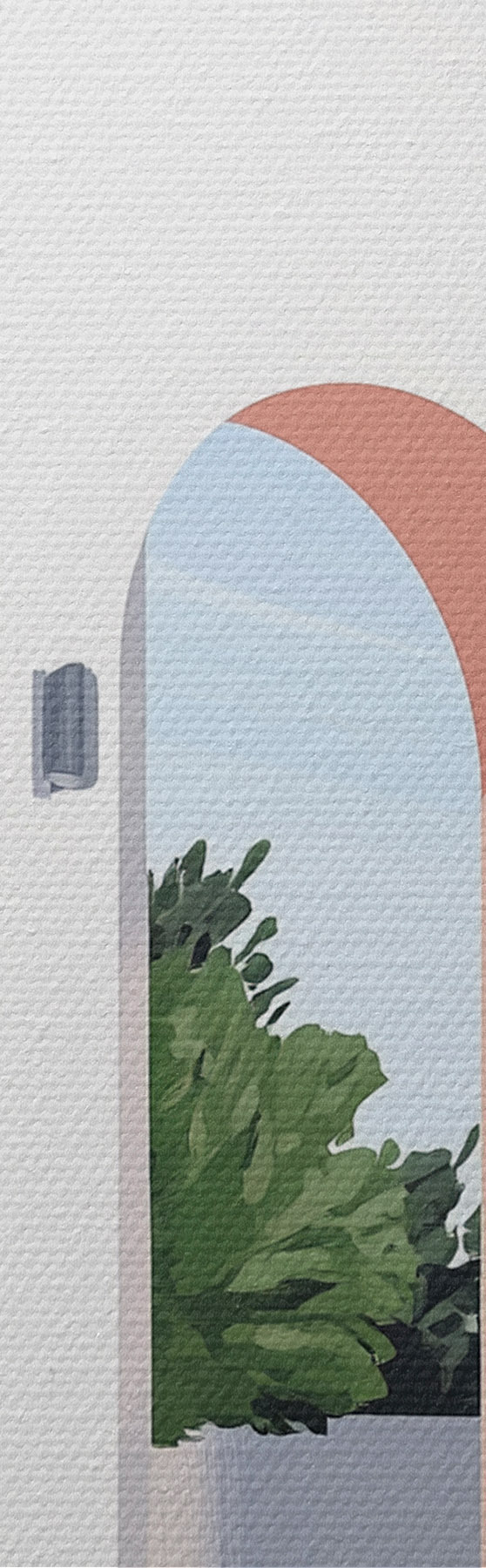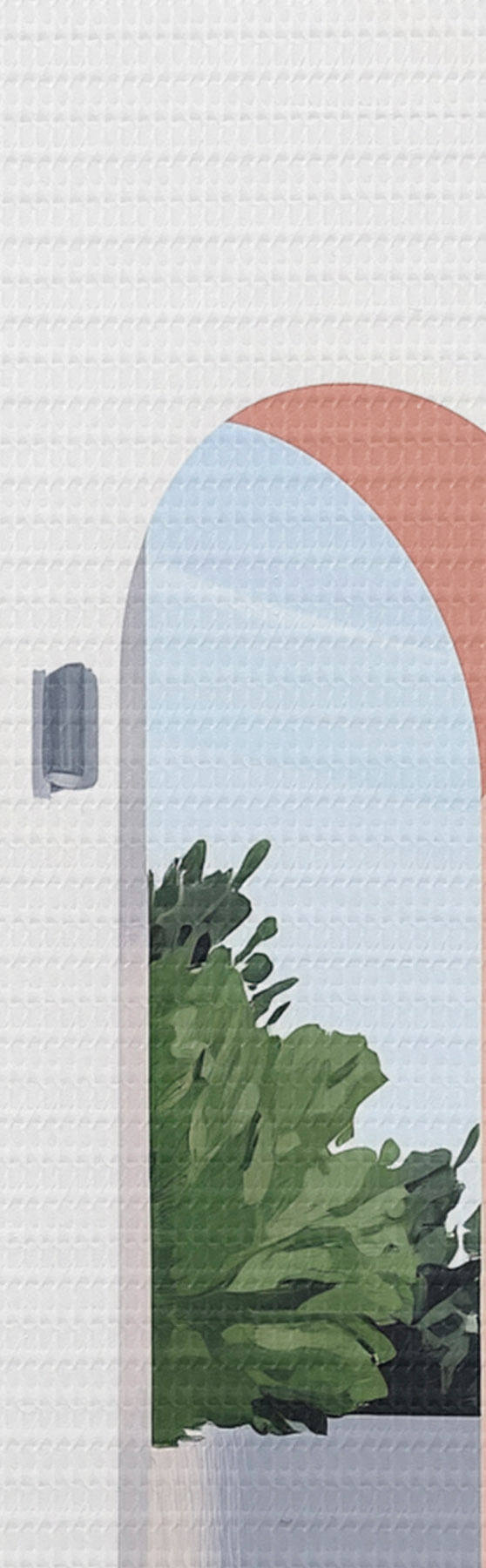 Image Villa blanche avec arches et jardin tropical, méditerranéenne, style plat Nr r44153