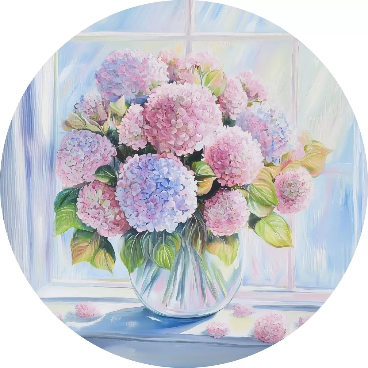 Tableaux ronds Bouquet de fleurs sur la fenêtre r44210