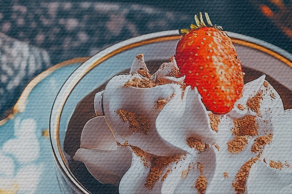 Trois types de matériaux peuvent être commandés : Economic Canvas - matériau dense et durable pour l'impression numérique, identique à la toile de peintre, surface imperméable, reproduction réaliste des détails, matériau à grain moyen. Premium Canvas - la texture ressemble à celle d'une toile de peintre (petits fils entrelacés). Reproduction douce et détaillée de l'image sur une surface mate. Eco-Premium - tissu 100 % coton de haute qualité. Grâce aux fibres naturelles de coton, le matériau est durable et résistant à l'usure. Excellente reproduction des couleurs et des détails.