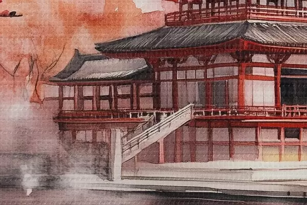 Image Magnifique paysage japonais avec cerisier en fleurs et maison sur le lac Nr r44310