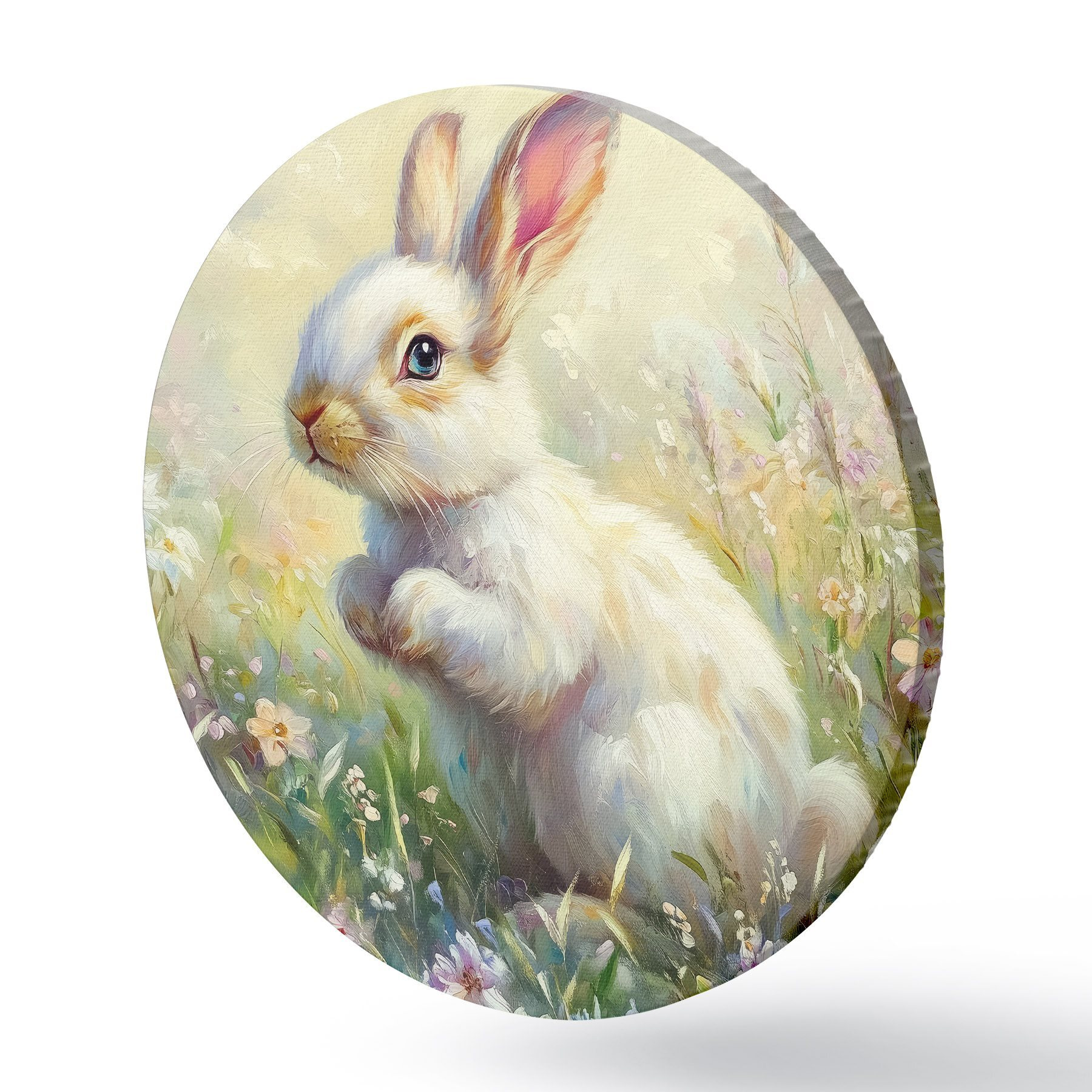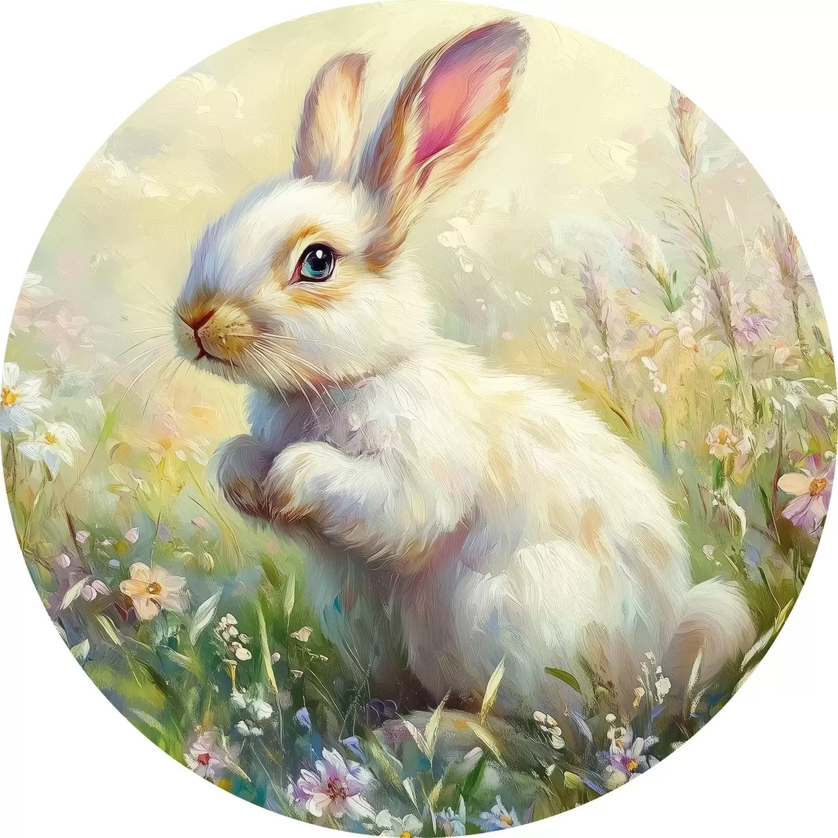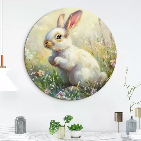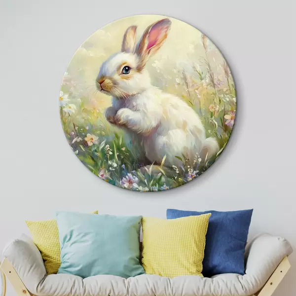 Tableaux ronds Lapin blanc parmi les fleurs r44326