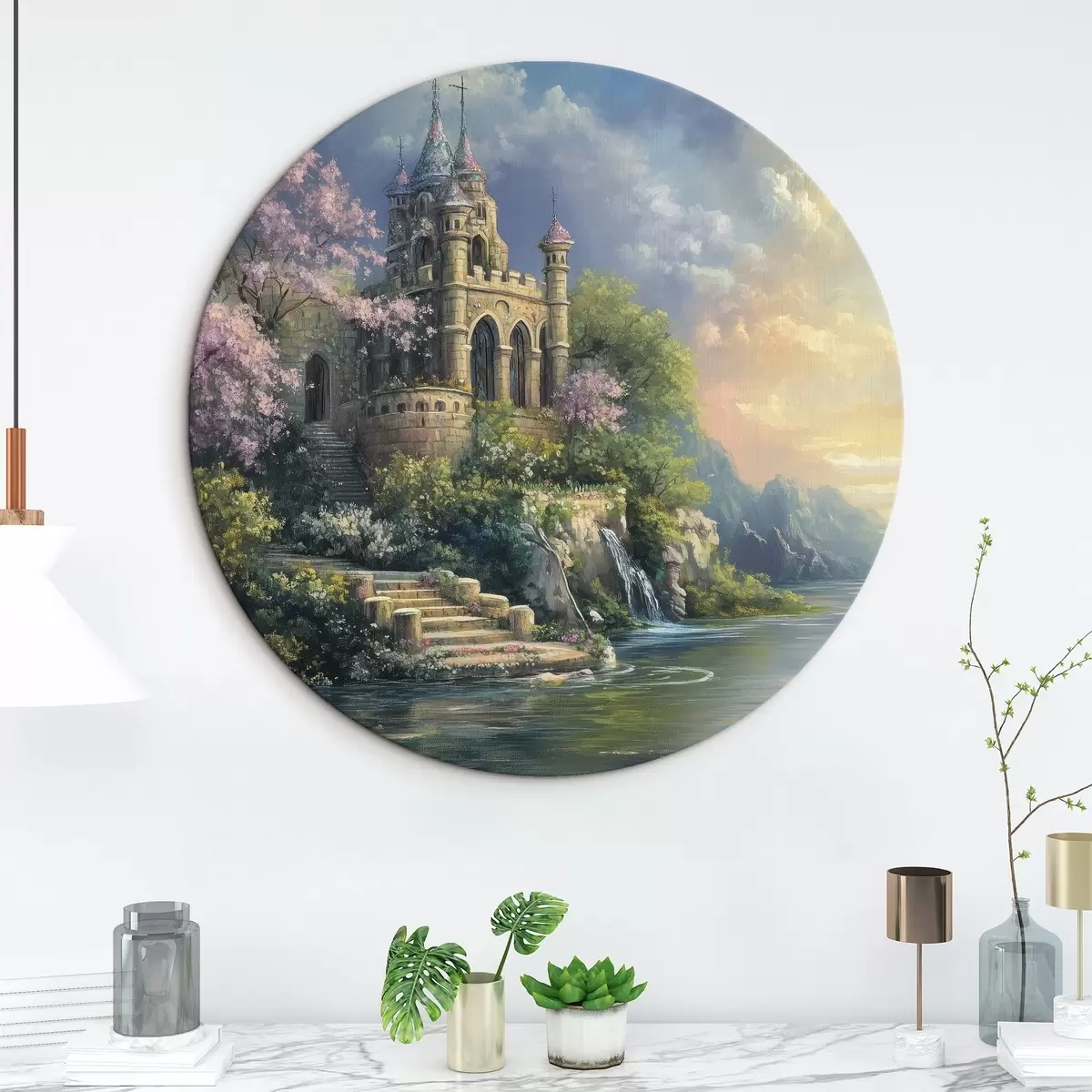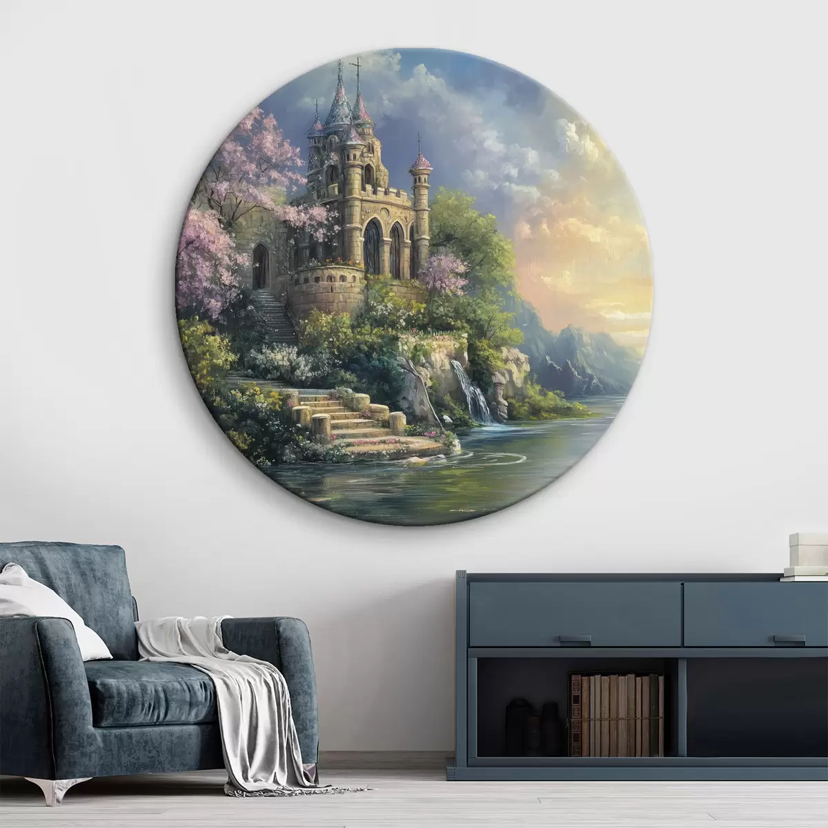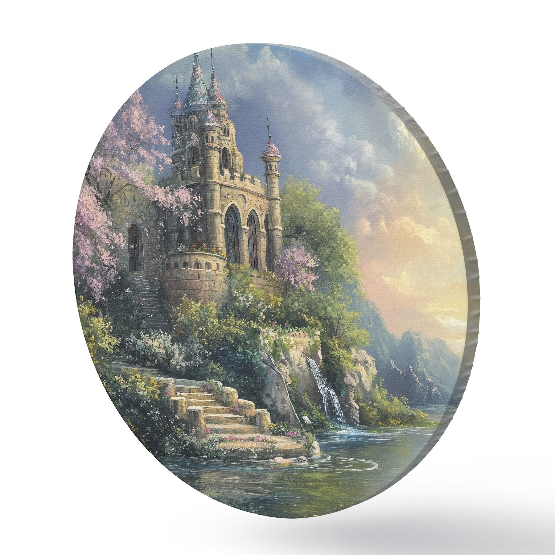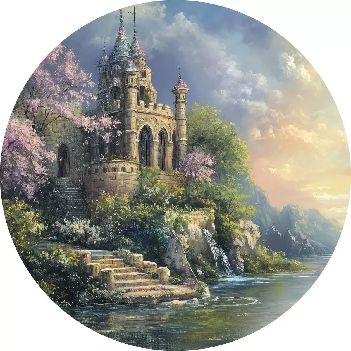 Tableaux ronds Château au bord du lac r44329