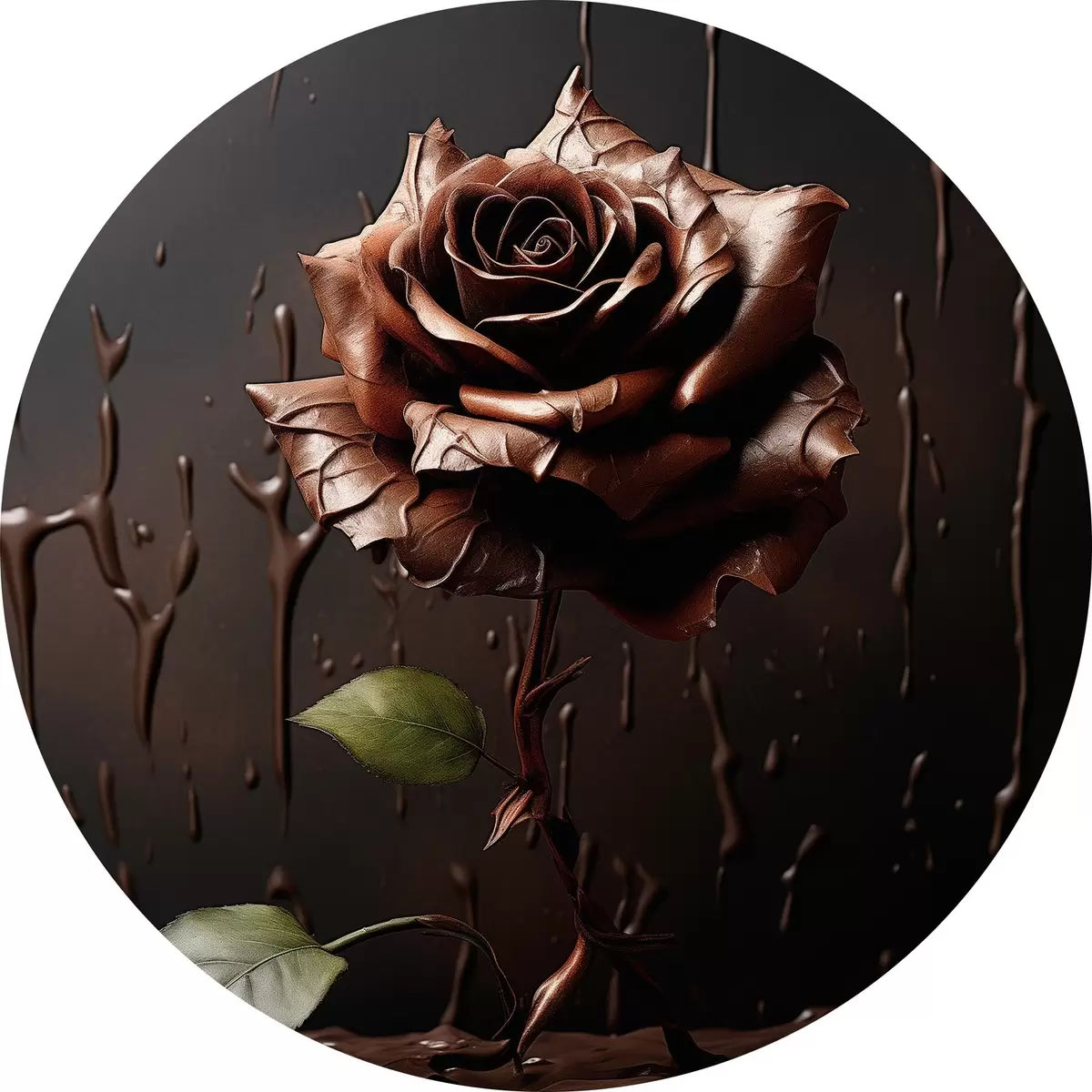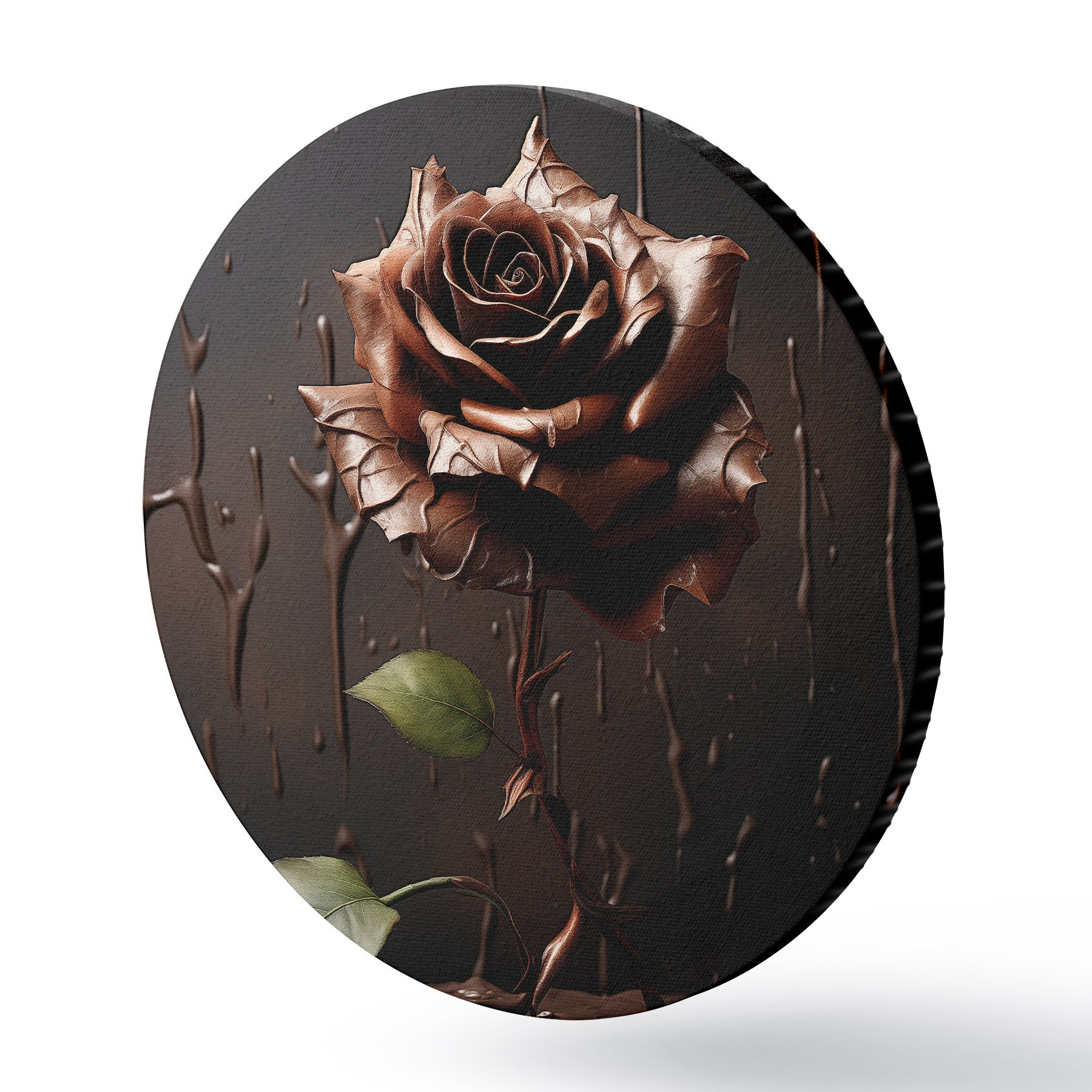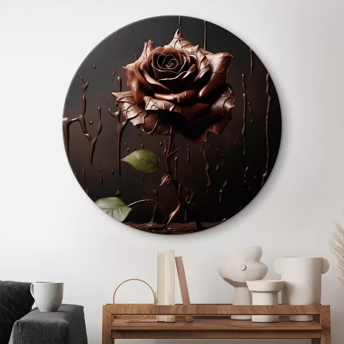 Tableaux ronds Rose brune sur fond noir avec éclaboussures de chocolat r44381