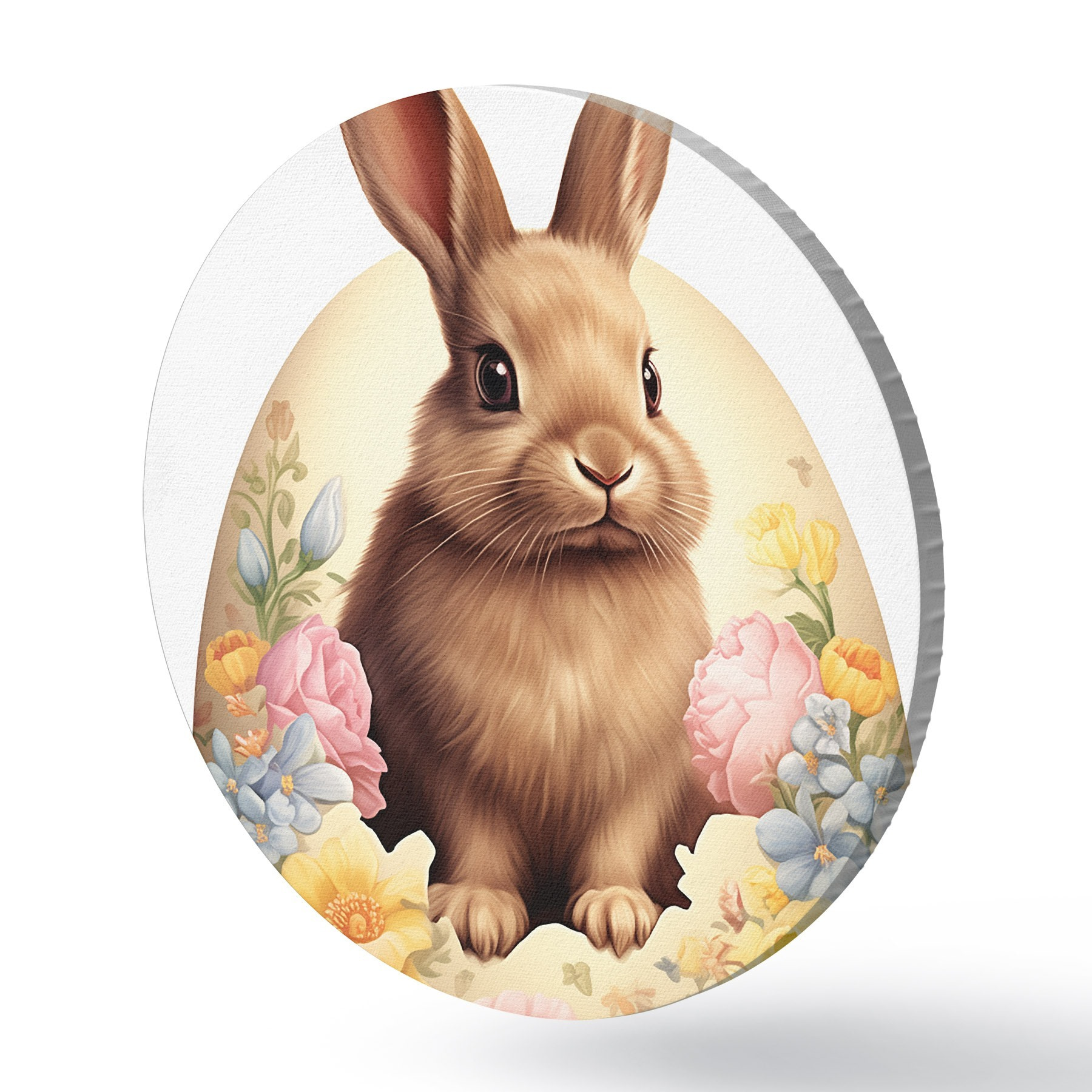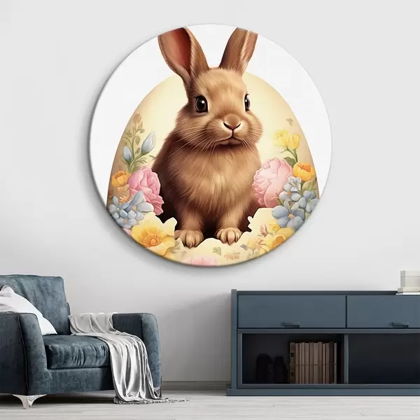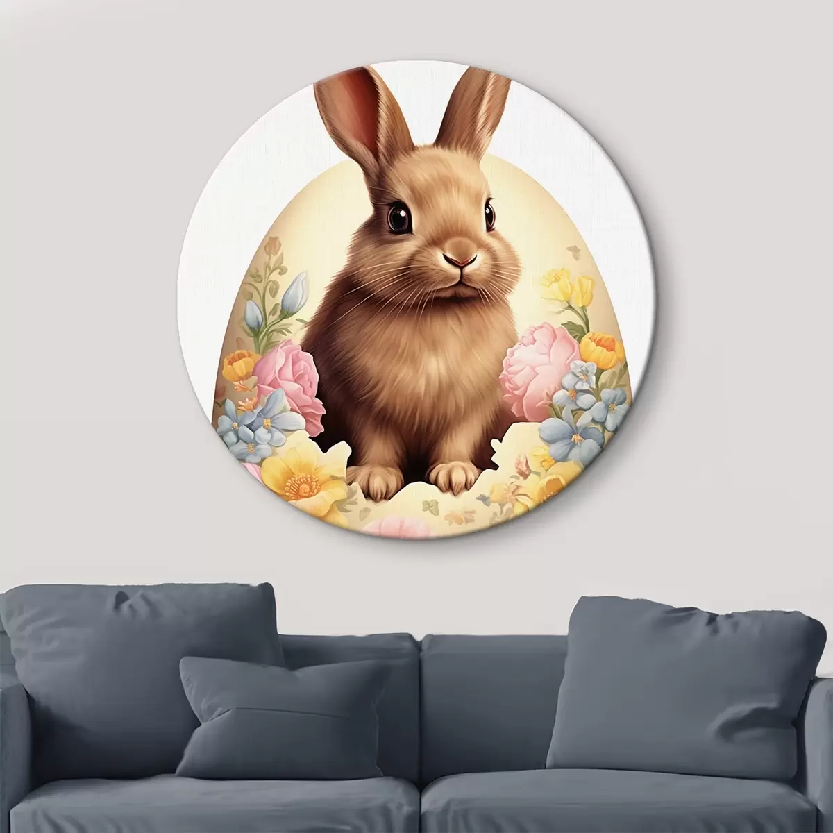 Tableaux ronds Lapin dans des fleurs aquarelles r44383