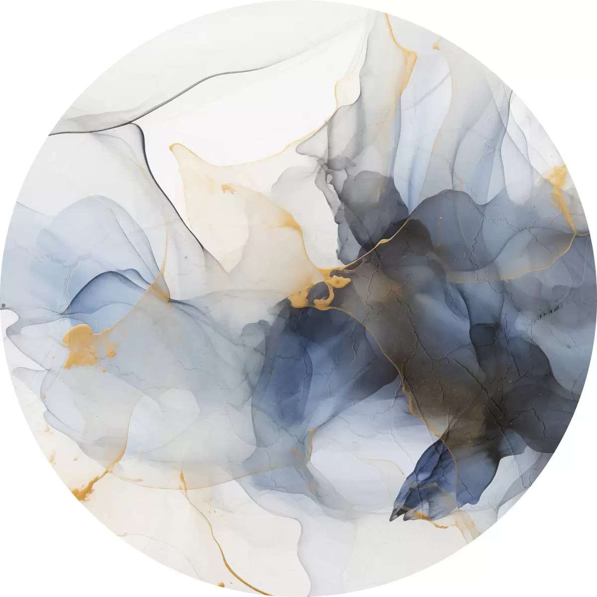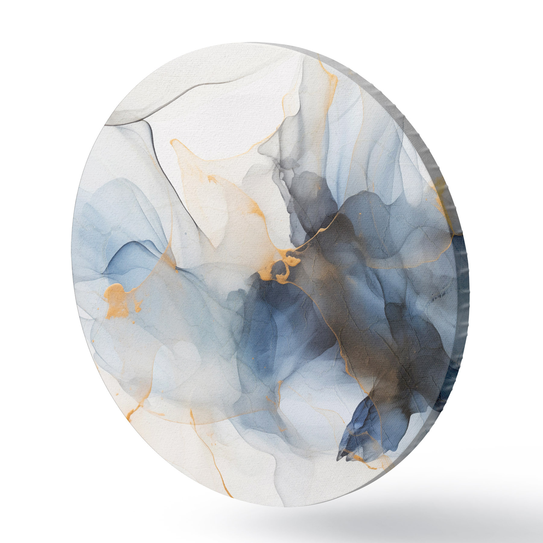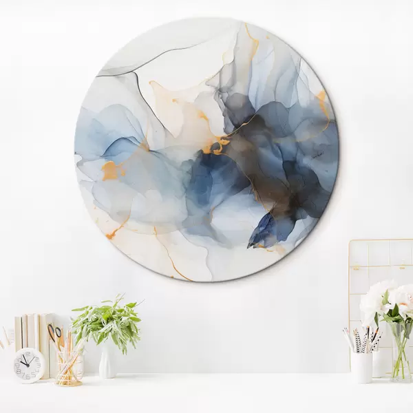 Tableaux ronds Peinture abstraite à l'encre bleue, formes fluides et organiques, textures délicates sur fond blanc r44397