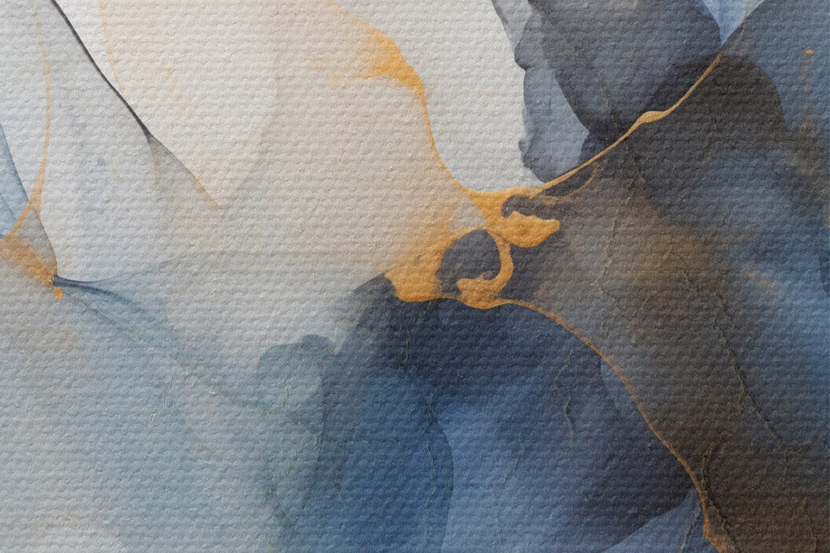 Image Peinture abstraite à l'encre bleue, formes fluides et organiques, textures délicates sur fond blanc Nr r44397