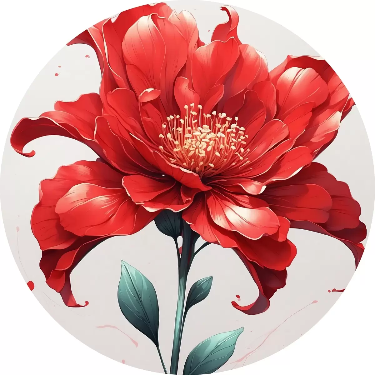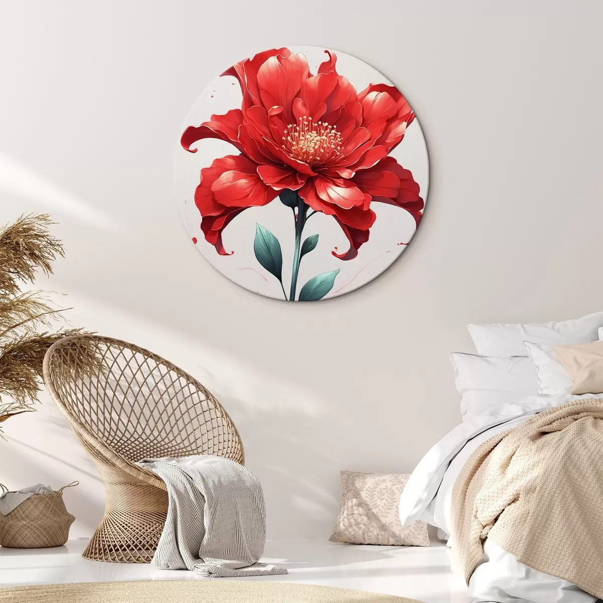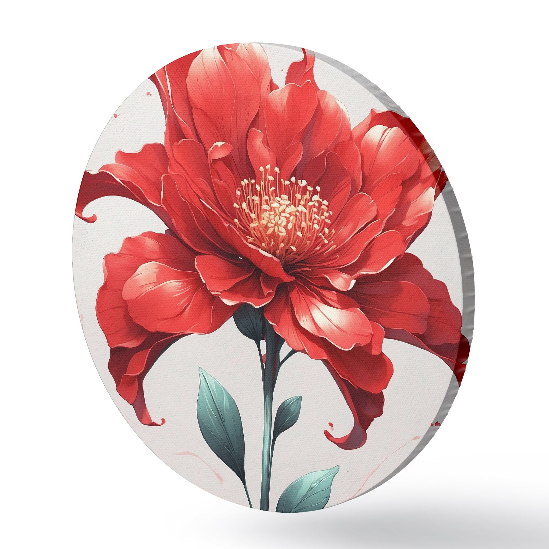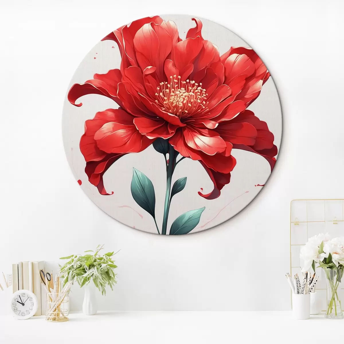 Tableaux ronds Fleur rouge sur fond blanc-rouge r44442