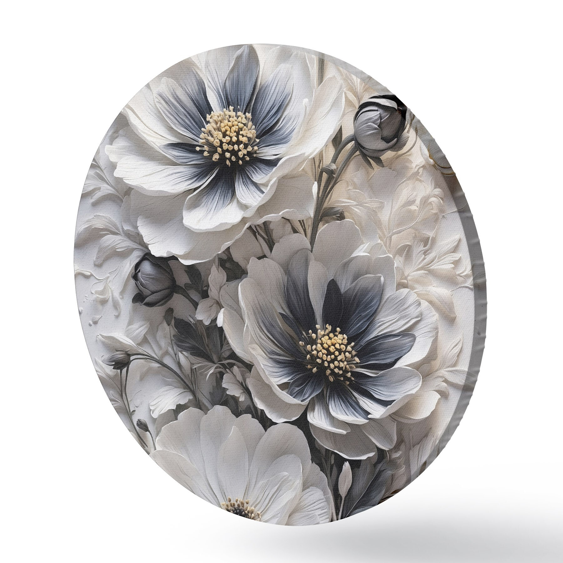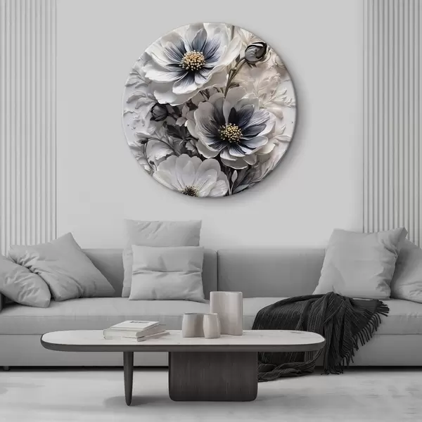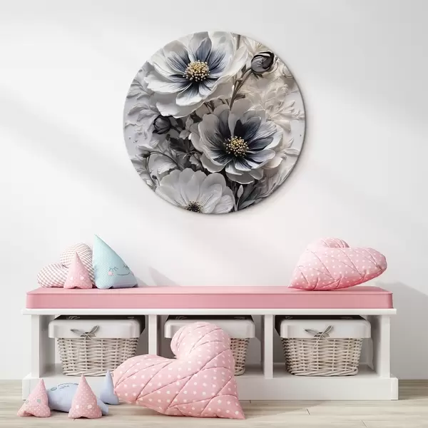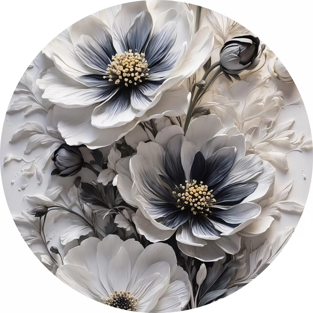 Tableaux ronds Fleurs noires et blanches sur fond blanc r44446