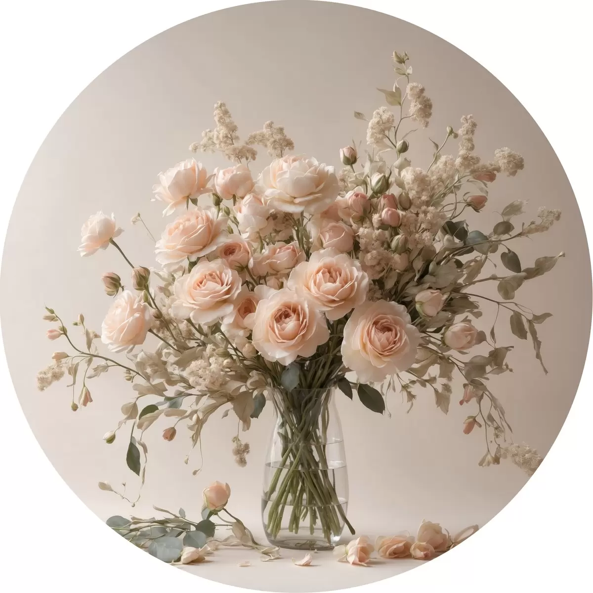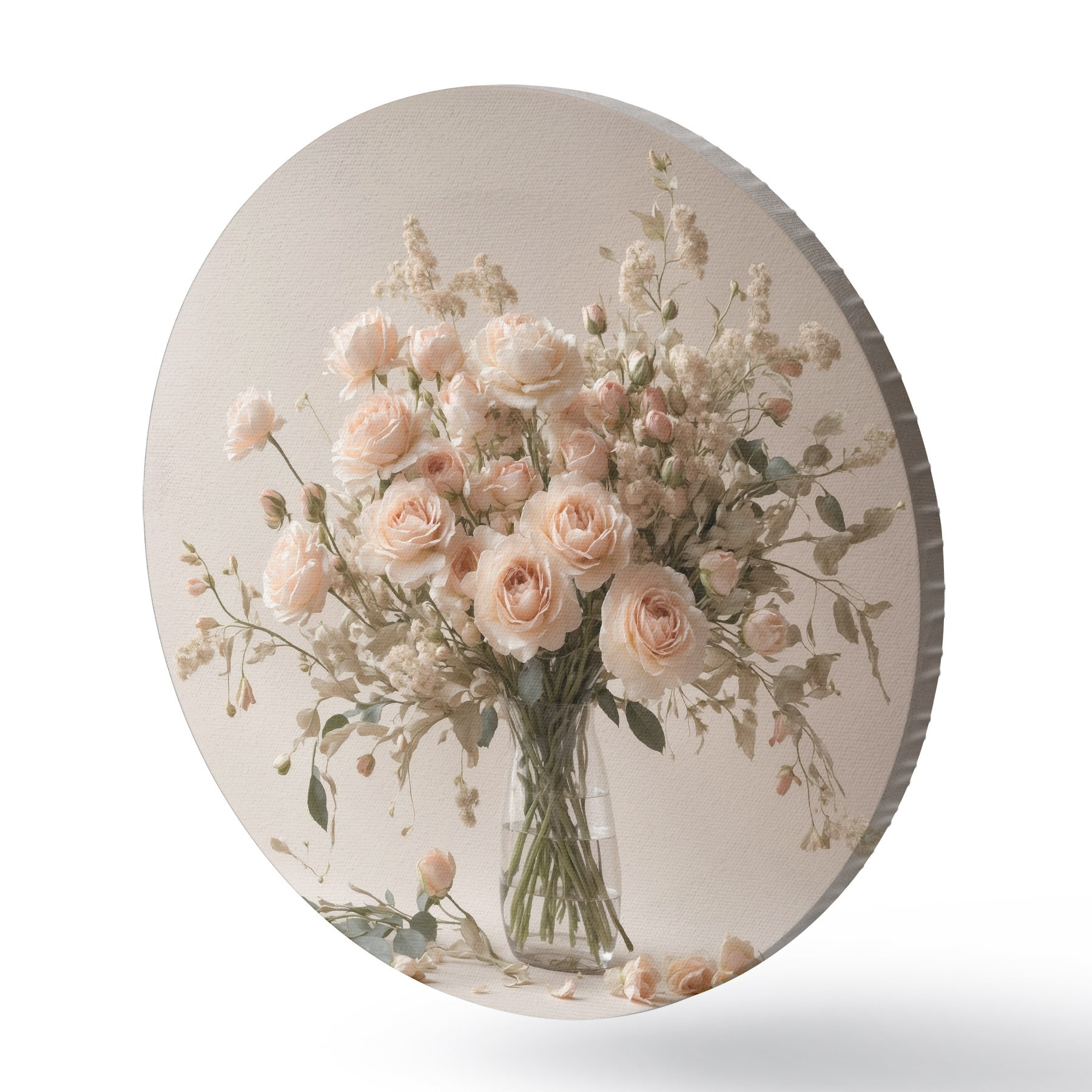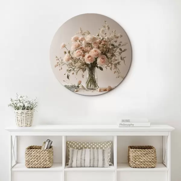 Tableaux ronds Roses blanches dans un vase transparent r44451