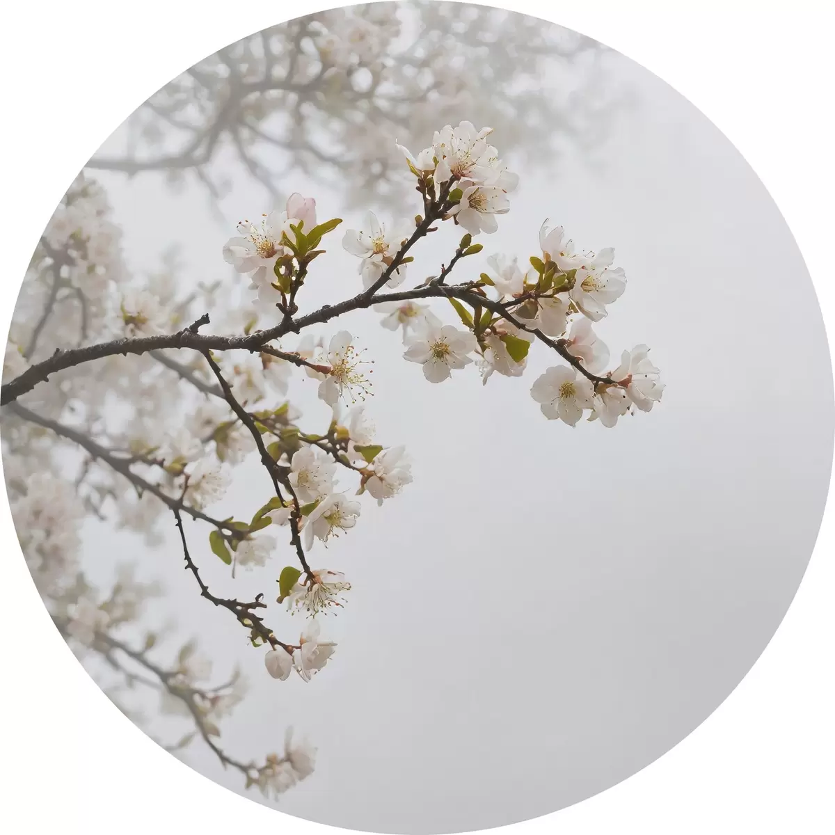 Tableaux ronds Arbre à fleurs dans le brouillard r44473