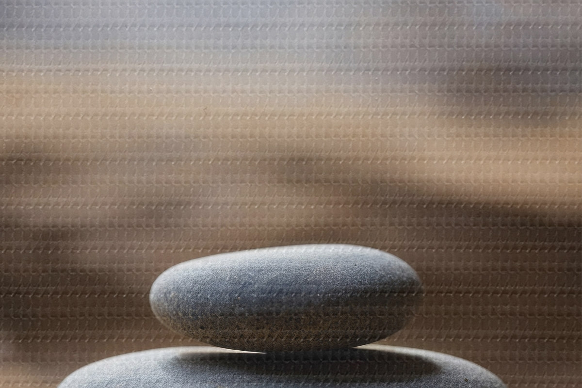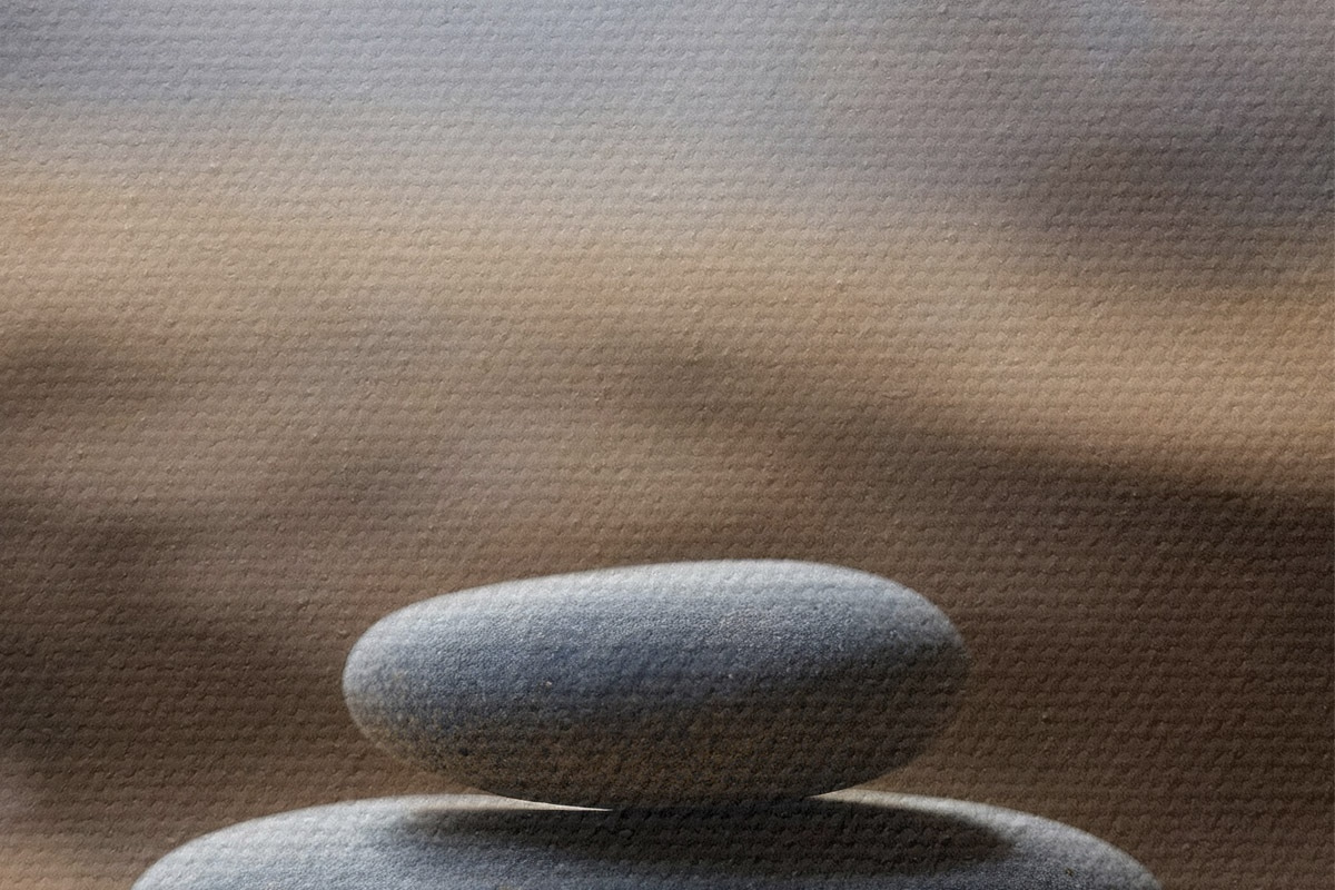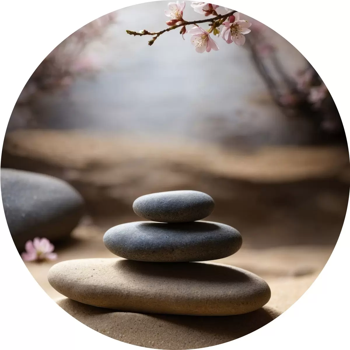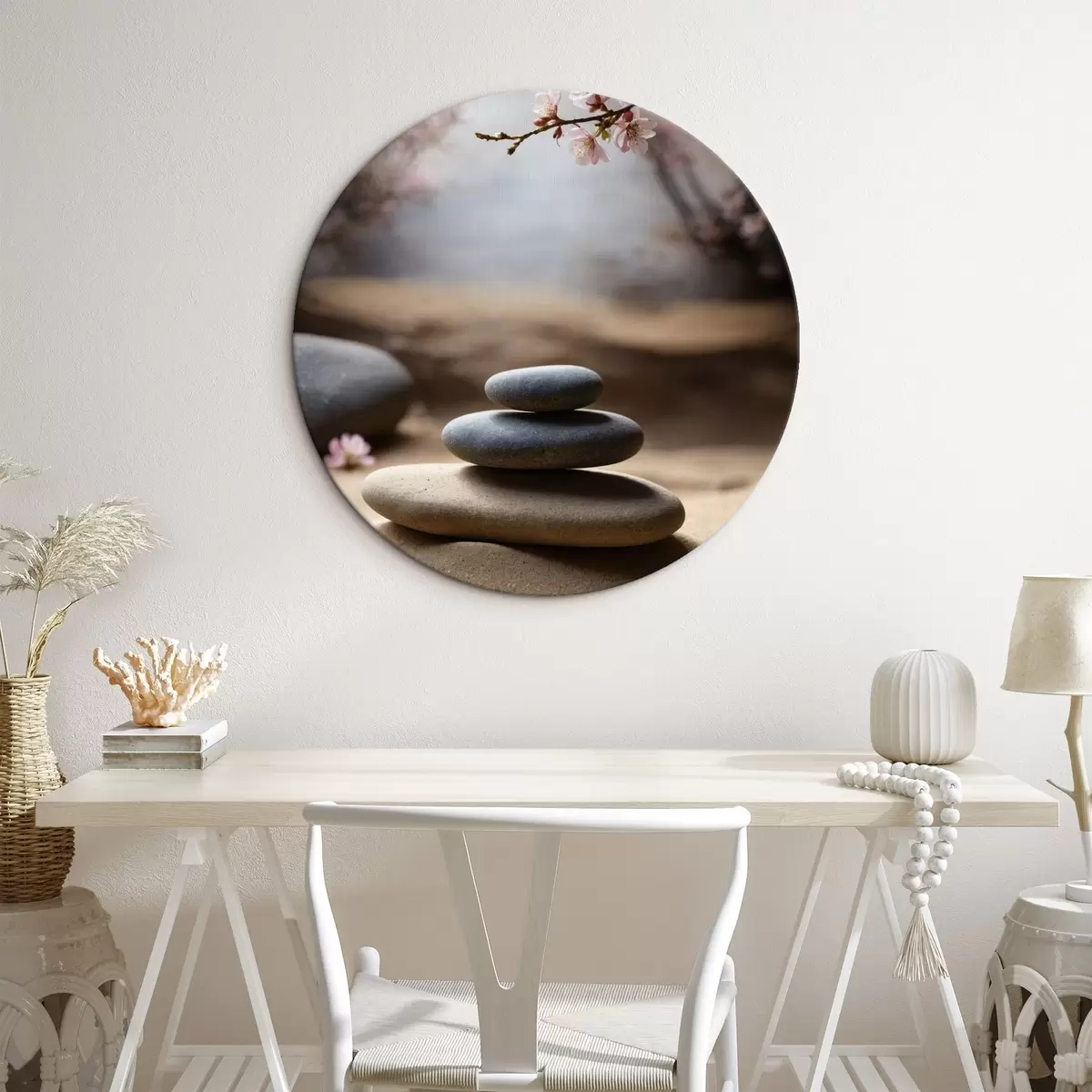 Tableaux ronds Pierres sur le sable sur fond flou r44475