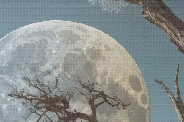 Image Arbre poussant au milieu d'un lac sur fond de lune Nr r44481